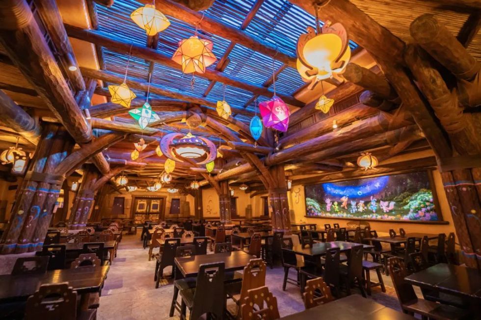 在达菲好友欢庆堂的中央,一幅壁画描绘了达菲和朋友们围坐在篝火旁的场景,这一场景也是欢庆堂内主题餐饮的灵感来源。餐厅将提供各式烧烤菜品,同时,餐厅推出的每月限定菜品将延续“从农场到餐桌”的理念,用全国各地农场精选的特色食材为游客烹制出应季时鲜美味。