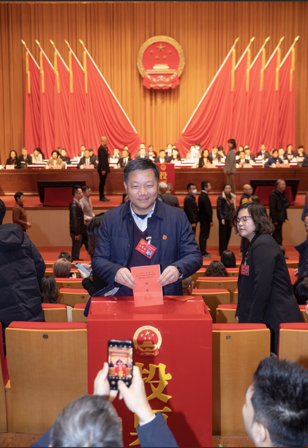 会场内,代表委员们全神贯注,认真履职,行使权力。