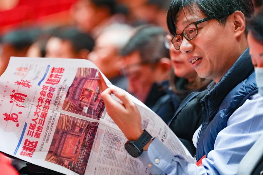 会场外,代表委员们步履匆匆,笑容灿烂,眼神坚定。分组活动中,代表委员们热烈讨论,积极建言,提出真知灼见。