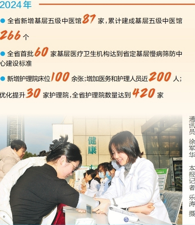 优化老年护理院、遴选基层慢病筛防中心、提升五级中医馆质量……在2024年度省政府12类55件民生实事中,省卫健委牵头的“病有所医”民生实事项目均高标准完成,部分项目超额完成。