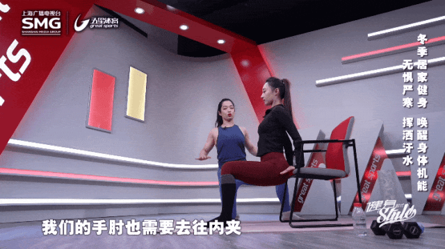 动作要点:坐在椅子上,双手放在臀部两侧,臀部微微离开座椅,身体垂直往下,弯曲手肘,臀部往下走,肩往后靠,然后往上推。这个动作可以尝试12-20个为一组,每次完成2组。