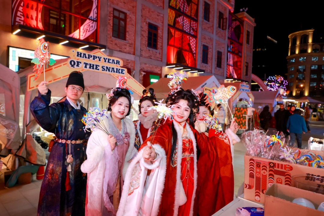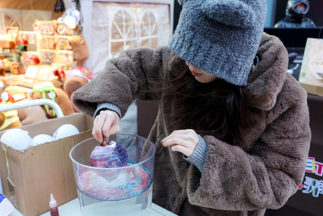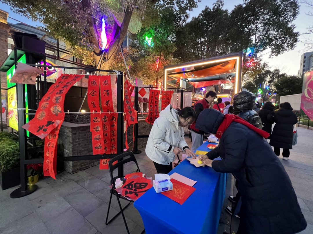 写春联、制漆灯、嬉鱼灯……在1月10日,滨港商业中心今潮8弄开启的潮集集×无所市事“蛇来运转游园会” 上,市民们感受到了一场潮趣好玩的新春游园之旅。
