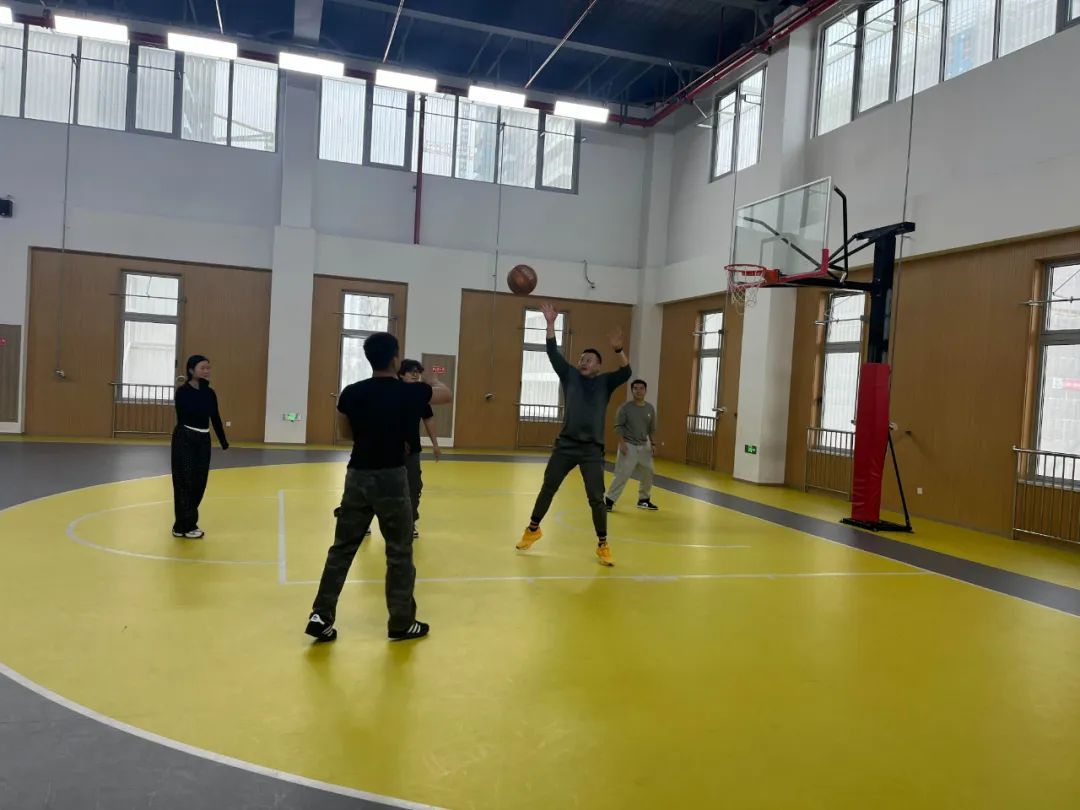 上午10点,在西渡街道浦江第一湾市民中心四楼的篮球馆,市民朱秀铎正在和朋友切磋。篮球馆面积超过800平方米,层高9米,采光和照明都很不错,让他体验感特别好。热爱打球的他,之前一直在西渡公园对面的室外篮球场活动,一旦遇到阴雨天,可能就会改变锻炼计划,现在他就完全不用担心了。“我在这里又认识了很多新朋友,真的很开心。”朱秀铎介绍道,“现在天气冷,如果我们在室外打球,热身基本上就要20多分钟。在室内就还好,稍微跑一跑,活动一下,我们就可以直接打球了。”