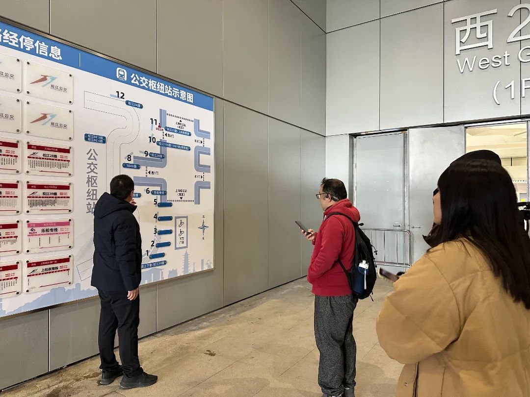 当天下午,参加活动的人员分别选择通过轨交9号线、公交车、自驾以及打车四种方式到达上海松江站,在工作人员的带领下,沿四种出行方式路线进行参观,了解站内设计理念、运营方式以及特色设施等。 据介绍,上海松江站候车层设有东、西、南3个高架进站口。站城融合的设计使得通过公共交通方式进站的旅客,在广场层乘坐扶梯就能直达北面候车厅,大大缩短了旅客进站乘车距离。“我是坐地铁9号线过来的,一路体验下来的感受还是很顺畅的。”网络达人刘先生表示。 随后,达人们实地参观了新建成的上海松江站并分享感受。据工作人员介绍,上海松江站创造性地将新建站房、综合服务中心、既有站房融为一体,复合了城市文化、商业、展示等丰富的功能,是践行“站城融合”设计理念、与站区城市规划充分协调、城市文脉高度契合的门户型车站。全新亮相的上海松江站让达人们眼前一亮,不约而同拿出手机拍照记录。“感觉变化很大!从之前的小站房一下子变成这么大一个综合站,相信会给市民的出行带来很大便利。”“候车大厅美观大气,现代感十足!”达人们纷纷表示。 此外,网络达人们还针对现场及沿路便民服务、信息提示措施等提出意见建议。自媒体运营者罗先生表示,自驾从松江新城过来,沿途有几条断头路,希望能建设高架桥方便通行。网络达人刘先生则提出,站内外的指路标识还需要进一步细化,为旅客朋友们出行提供便利。