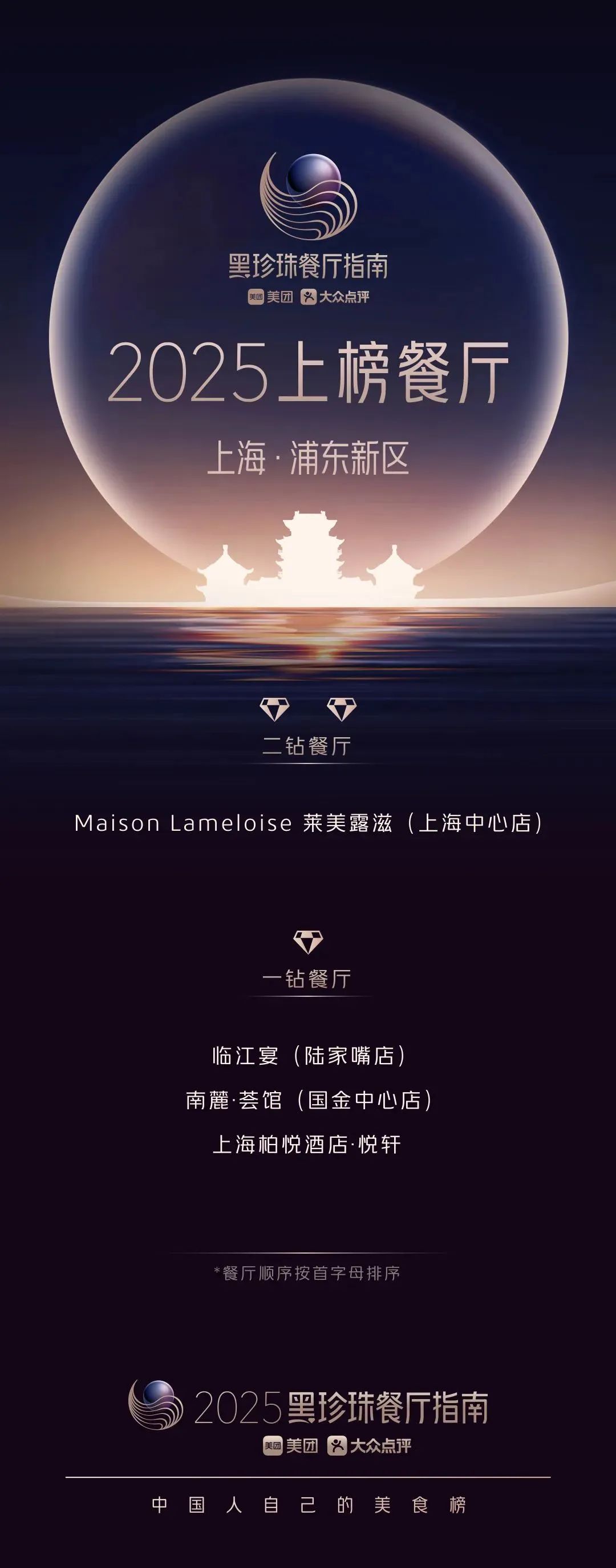 浦东上榜的4家餐厅分别是:二钻餐厅Maison Lameloise 莱美露滋(上海中心店);一钻餐厅临江宴(陆家嘴店)、南麓·芸馆(国金中心店)、上海柏悦酒店·悦轩。