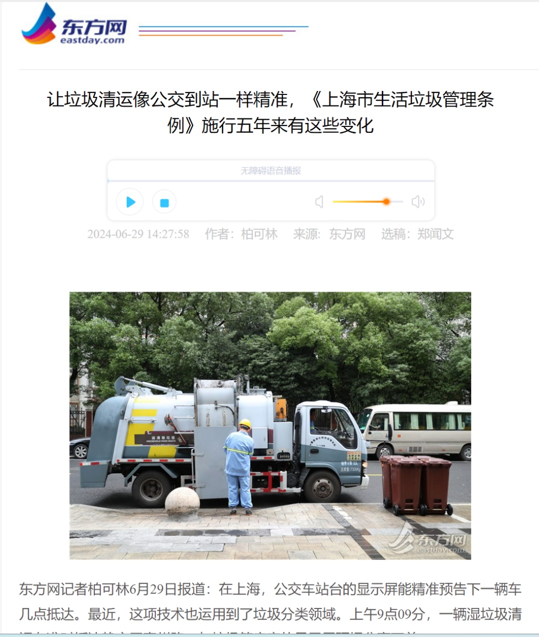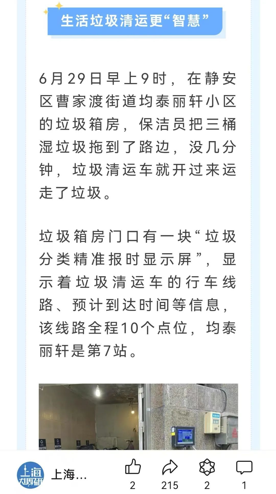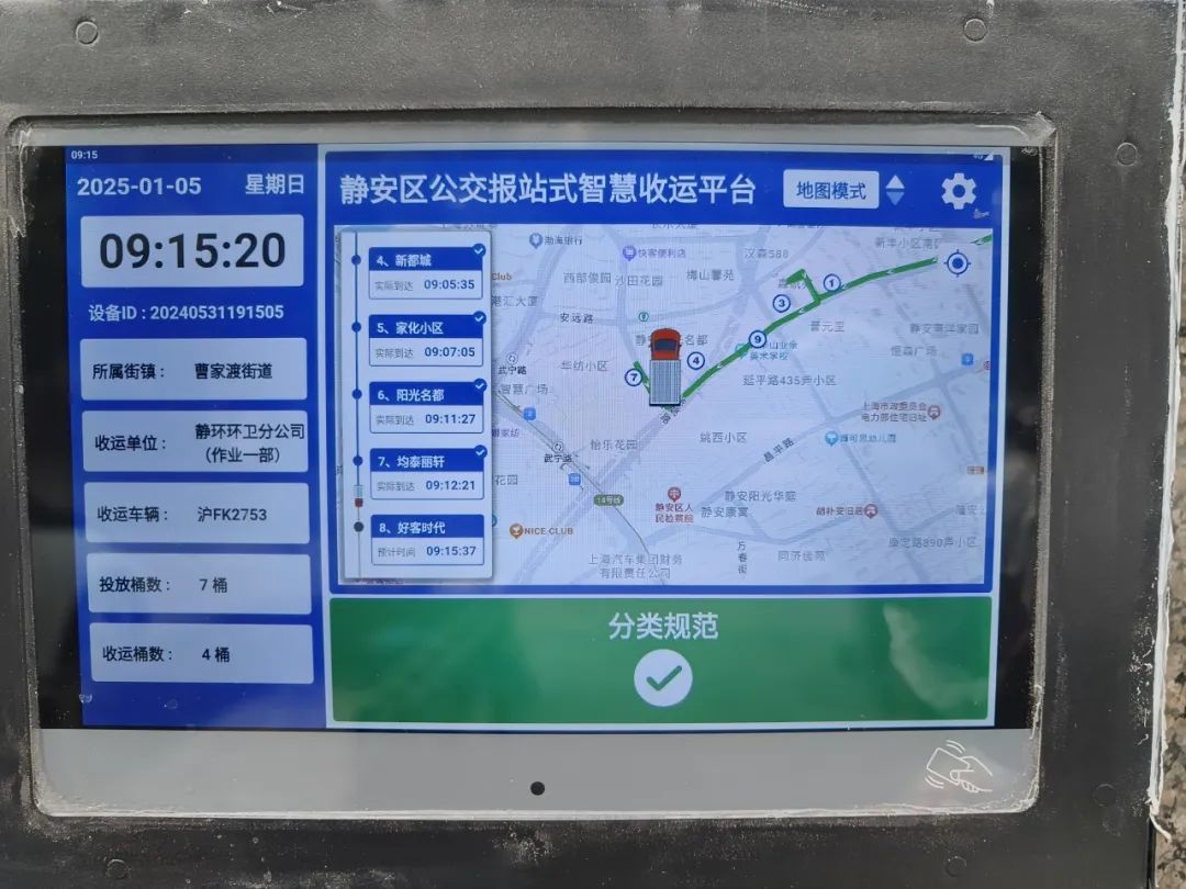 为进一步提升数字化监管水平,加快推进静安区智慧收运体系建设,区绿化市容局在市绿化市容局的指导下,结合本区区域实际开展调研排摸,于2024年上半年在全市率先推出三条“生活垃圾清运公交站牌式精准报时”示范线路。
