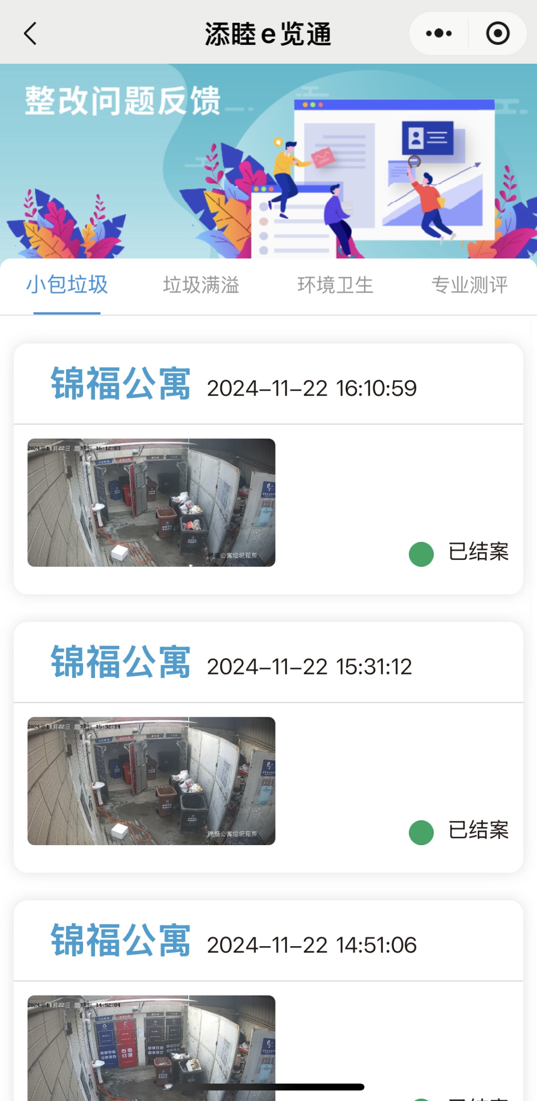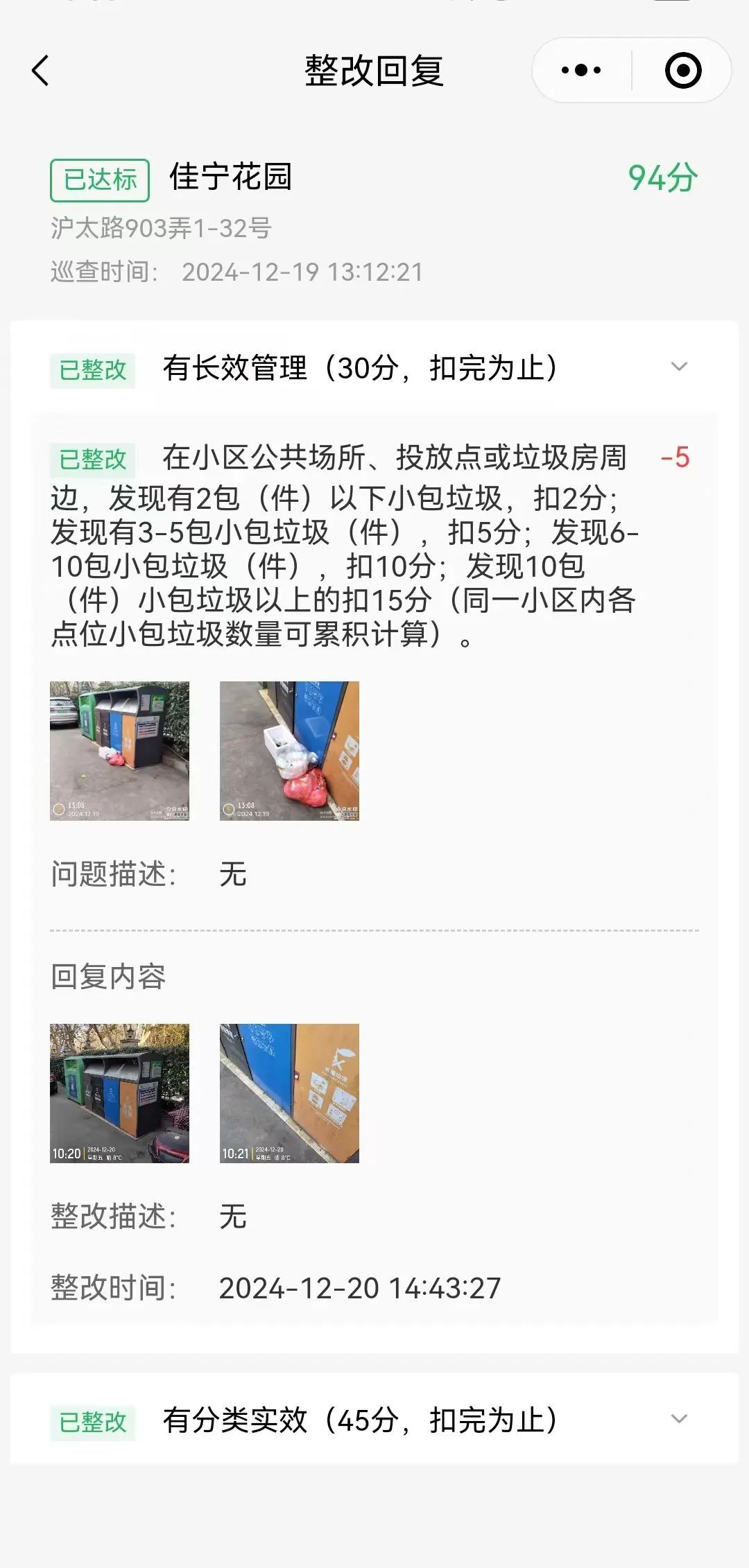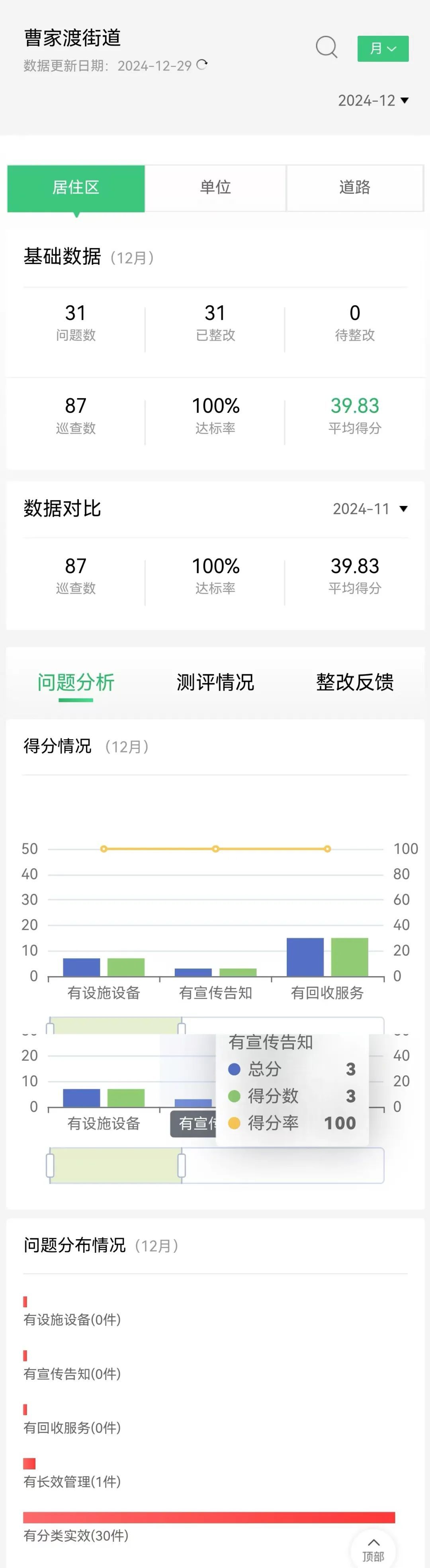 建立生活垃圾分类巡查反馈整改机制,全区居住区、单位、道路及沿街商铺、可回收物中转站测评情况通过“巡检一网通”实现“问题及时上传、案件自动生成、任务自动触发、处理及时反馈”的闭环管理,进一步提升源头管理精细化和高效化,提升垃圾分类数字化治理成效。