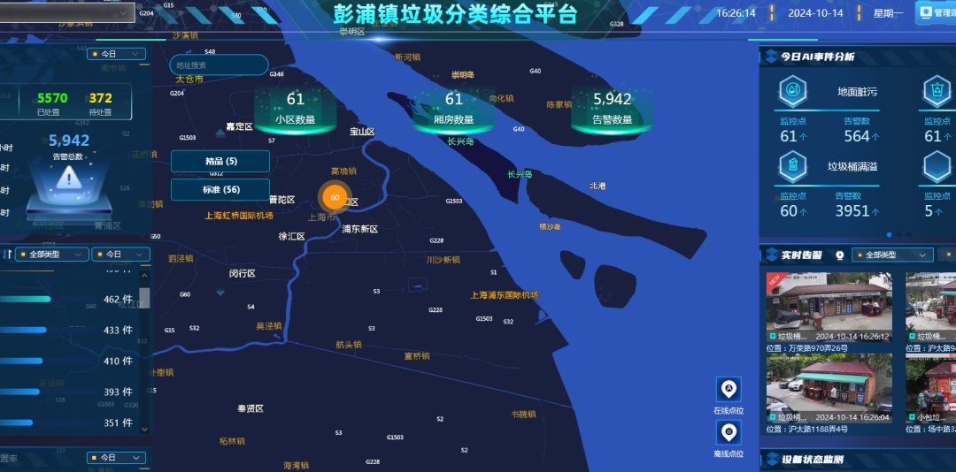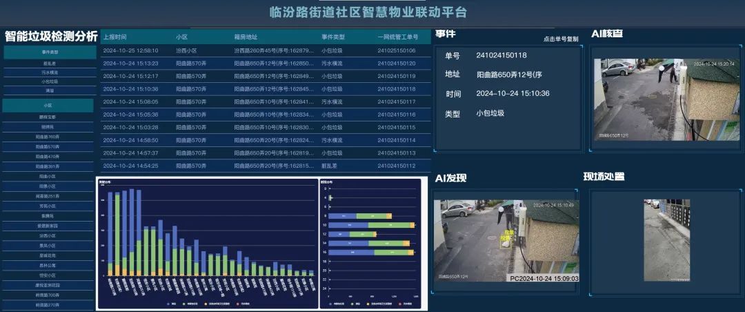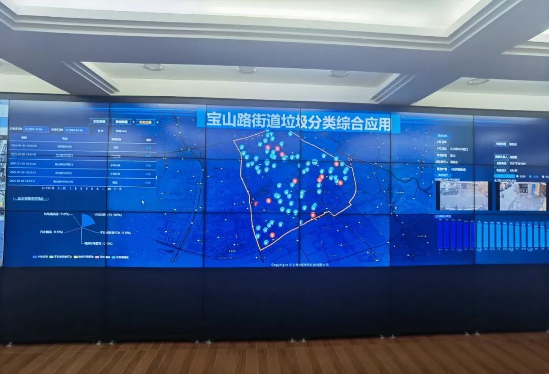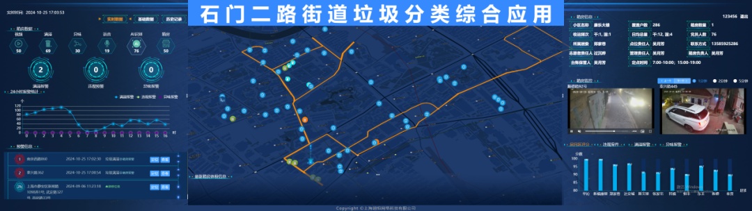 石门二路街道“一网统管”垃圾分类综合管理平台共纳入辖区52个居民生活垃圾投放点,视频监控设备全覆盖。AI算法涵盖小包垃圾、满溢、烟感、异味等多项内容,实现全方位、全时段、无缝隙地监管。依托物联设备、传感器设备、人工智能、云计算等信息技术实时全程监控辖区垃圾箱房实时状况,形成溯源体系,做到问题有迹可循、有案可查、有人可管。