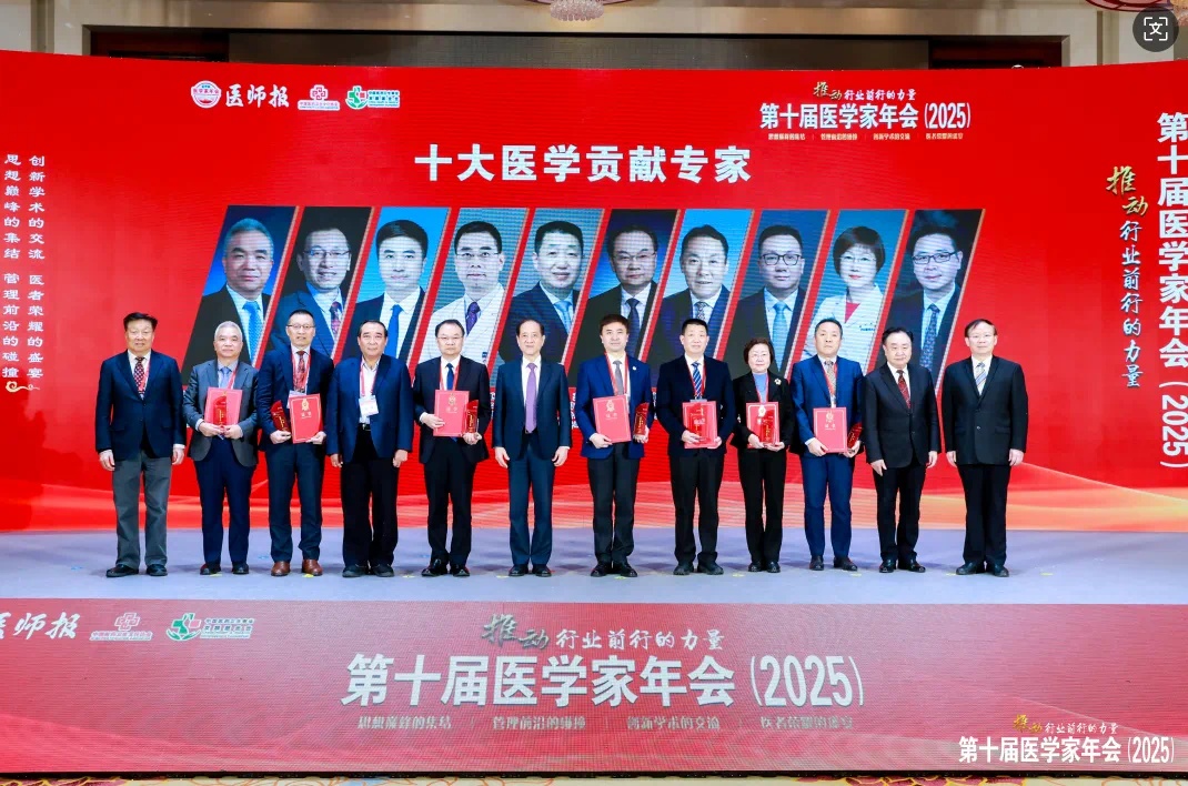 1月9日,“第十届医学家年会(2025)”在北京召开,颁发了“见证医学发展 致敬医界丰碑”“推动行业前行的力量”系列荣誉,我院核医学科主任石洪成教授荣获“十大医学贡献专家”称号。
