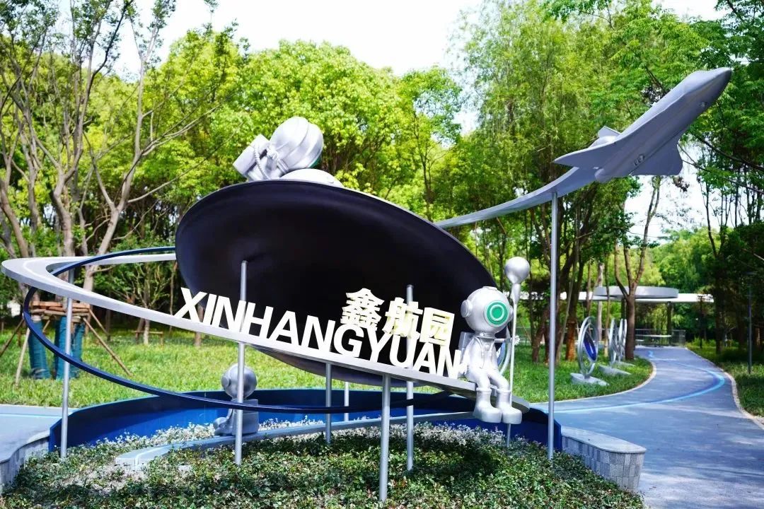 位于光华路南侧、六磊塘北侧的全新口袋公园“鑫航园”占地面积7802平方米,以“青枫绿屿 航天趣境”为主题,设置了沿街展示区、生态密林区、滨水休闲区,是一个集约共享、健康低碳、时尚品质的共享休闲空间。