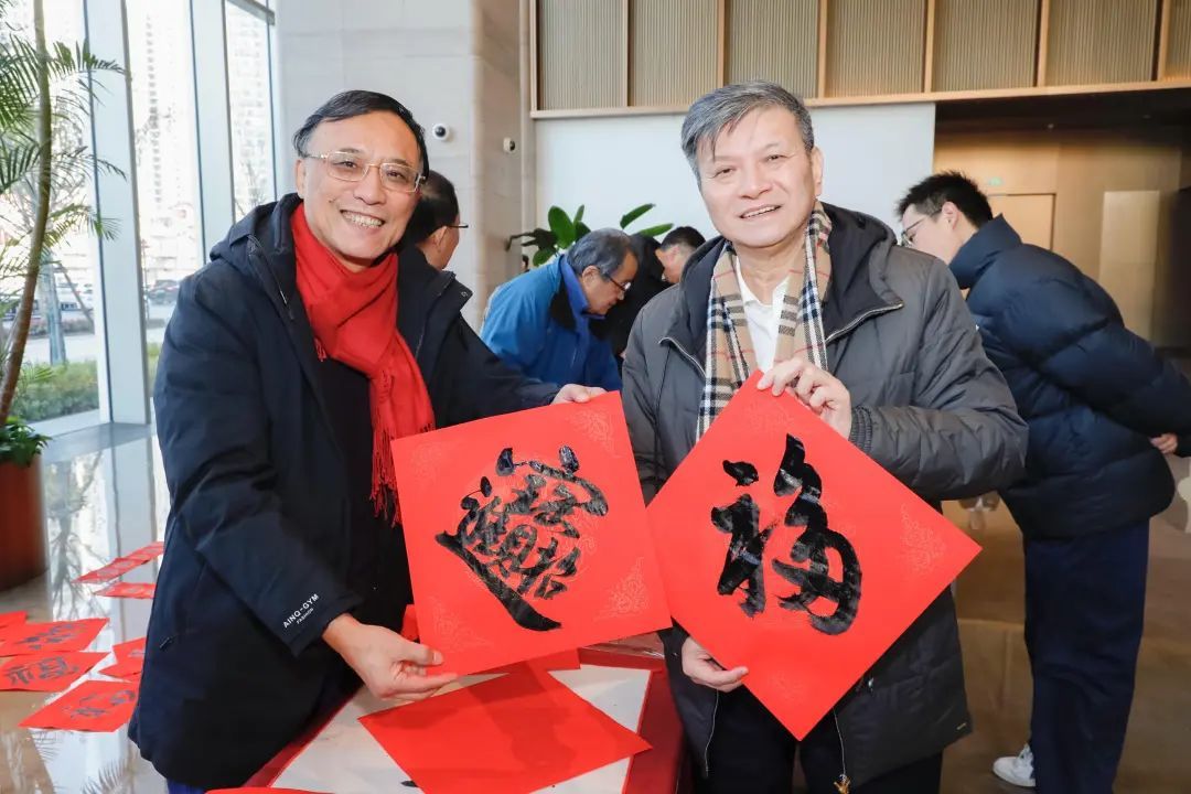 仪式上,上海市国际贸易促进委员会会长、上海市书协大型活动和志愿服务委员会会长周敏浩受邀上台开笔,淮海中路街道向思科(中国)有限公司、瑞安管理(上海)有限公司、中国太平洋人寿保险股份有限公司、和乐网管理咨询(上海)有限公司、上海邦信阳律师事务所以及百济神州(北京)生物科技有限公司等多家重点企业代表赠送了寓意吉祥的“福”字,以此表达对企业的美好祝愿,希望商圈企业在淮海这片充满活力的土地上,能够迎来更加辉煌的发展前景。
