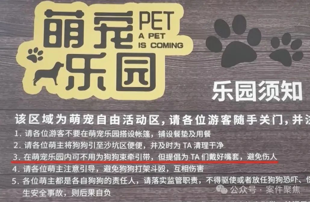 即便有些宠物公园或者宠物友好商场在公告中注明了免责条款,也并不意味着可以完全免责。场地方是否需要承担责任,要看其有没有尽到一定的安全保障的责任。