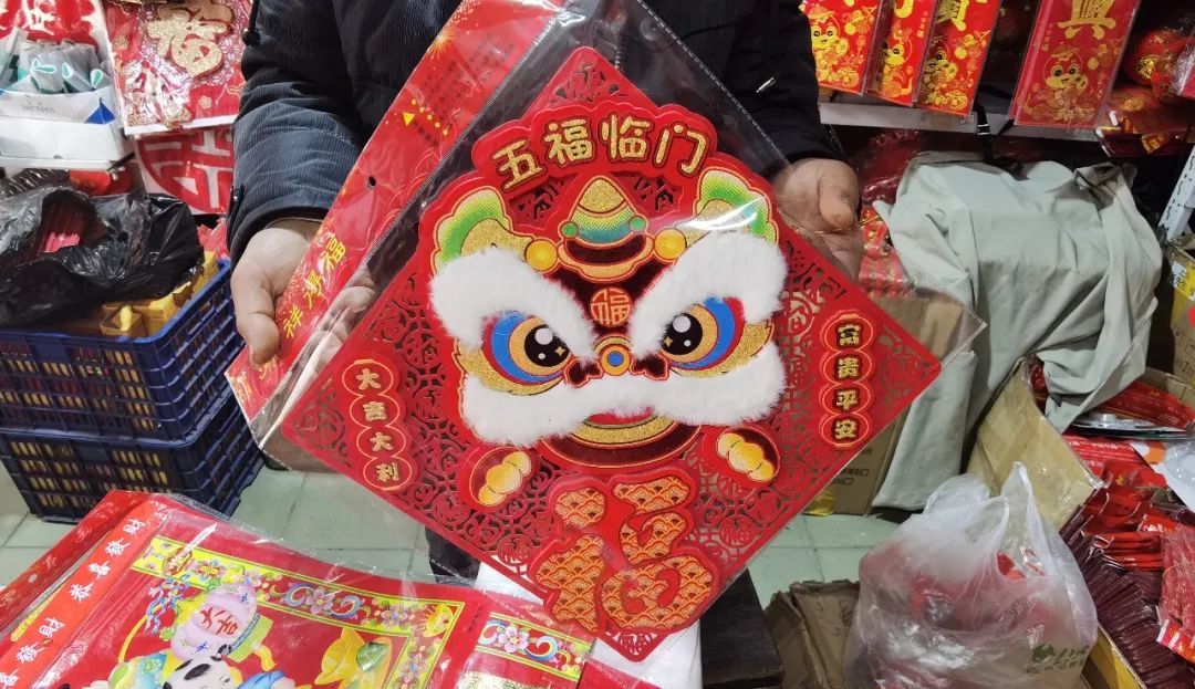 春节即将来临,南翔小商品市场推出各种款式的春联和装饰品,顾客可以根据自己的喜好和家居风格选择适合的春联款式。老板介绍,现在是春联、福字等节日饰品的销售旺季,普遍价格在10元左右。