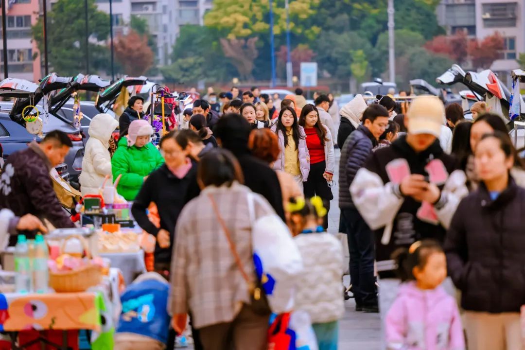 与一般店铺不同,落日后备箱市集给人的感觉更加鲜活生动。“和气生财没烦恼”“摆摊赚狗粮”“专职低价售卖多巴胺”……摊主来自各行各业,工作日朝九晚五两点一线,周末晚上摇身一变成了开车小老板。尽管大胆问价砍价,放手买买买,顺便聊上几句,分享副业经验,感受城市里人与人之间久违的热情。