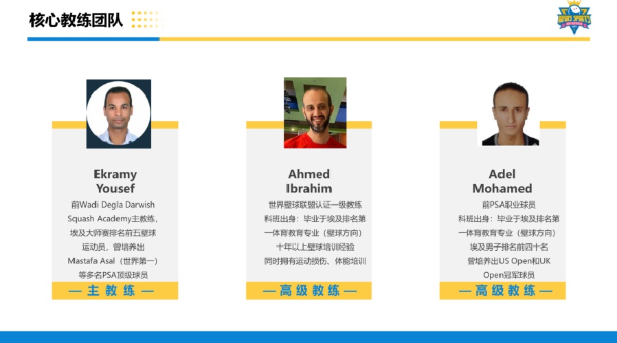 壁球青训中心建有符合国际标准高规格的专业壁球场,配备体能健身、泳池、冰池等专业训练设施。