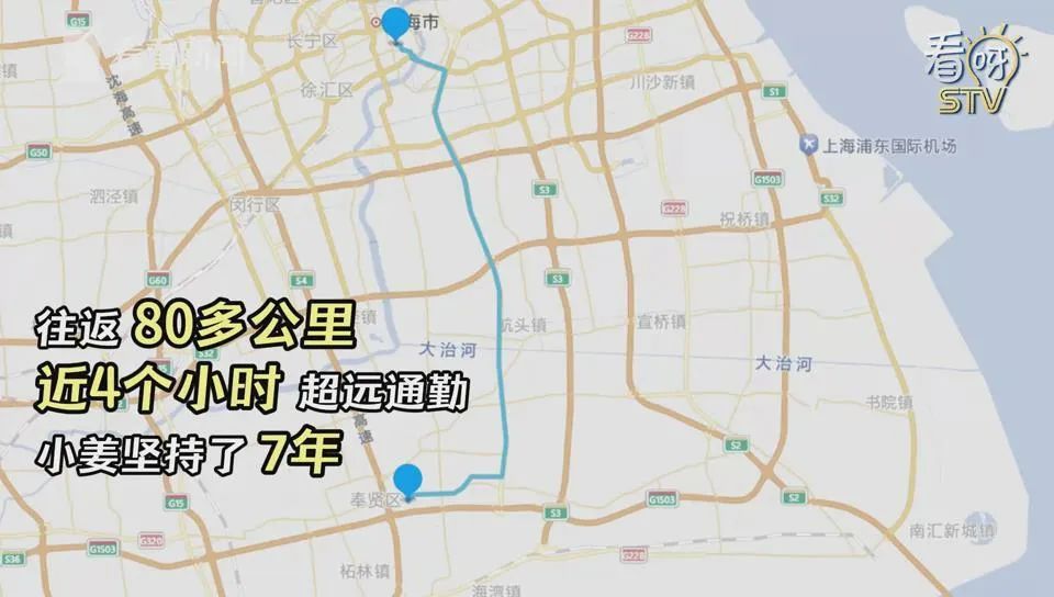 小姜家住奉贤南桥,目前在黄浦区的一所小学任教,因此,他每天不得不往返80多公里,单程通勤时间接近两小时。而这种令不少打工人直呼“可怕”的极限通勤,他已经坚持了7年。“快的话单程只要90分钟,有时衔接不够丝滑,就需要105分钟”。