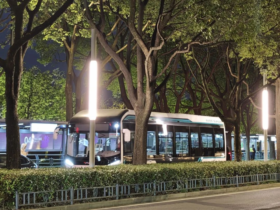 站前广场上,一排排精致的立杆灯轻轻洒下柔和的暖白色光辉,如同繁星点点,温柔地照亮旅客前行的每一步。