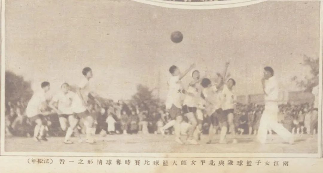 1930年,上海两江女子篮球队与北平女师大篮球队比赛场景