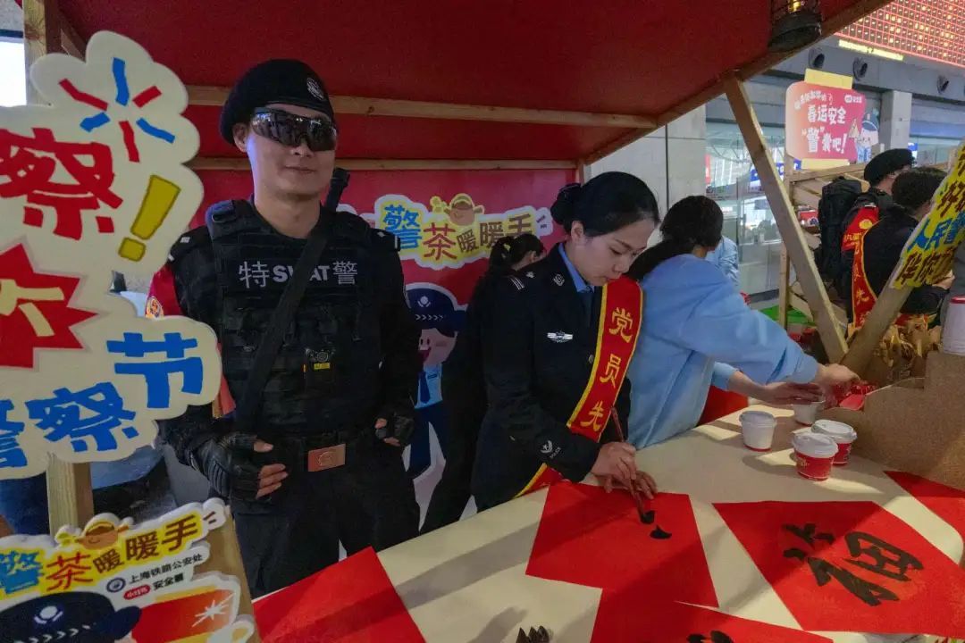 2025年春运大幕即将拉开,为了庆祝第五个中国人民警察节,同时给广大游客带去更安全的出行体验,上海铁路公安处携手小红书安全薯于1月10日在上海虹桥火车站开展“警徽闪耀110 初心如磐为人民”主题庆祝活动。
