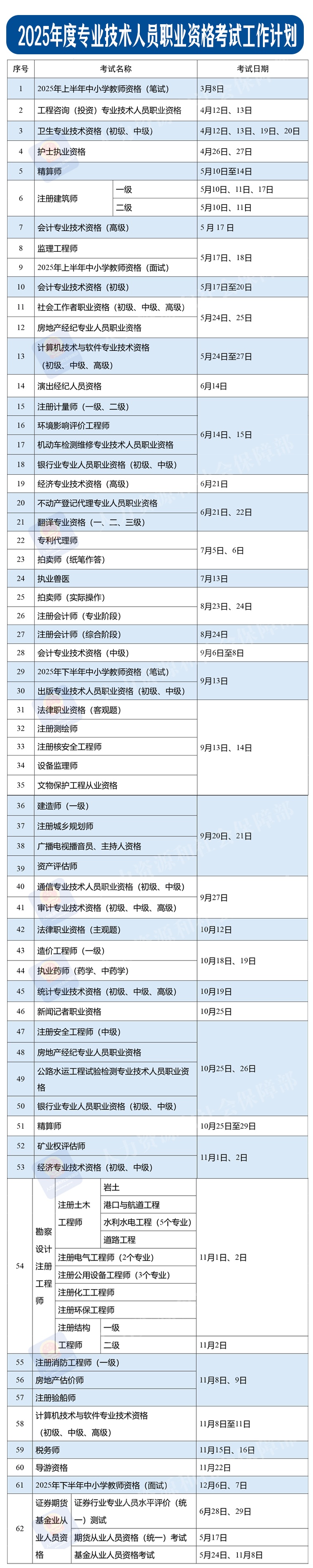 近日,人力资源社会保障部办公厅印发《关于2025年度专业技术人员职业资格考试工作计划及有关事项的通知》。2025年上半年中小学教师资格(笔试)、工程咨询(投资)专业技术人员职业资格……大家关心的考试时间表定了!快收藏好↓