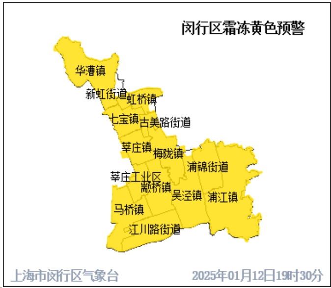 闵行预警发布中心2025年1月12日19时30分发布霜冻黄色预警信号: