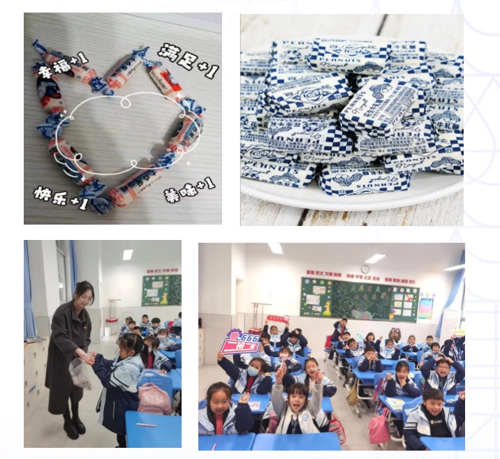 学生会给糖果取名、给父母讲述“四颗糖”的故事、与他人分享糖果,学校希望以此培养孩子学会感恩,从小拥有爱的担当。