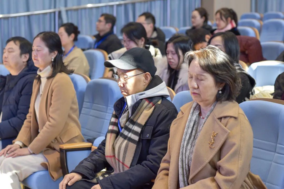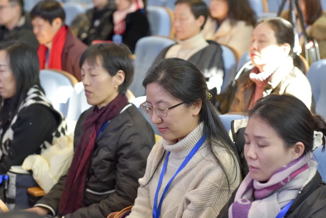 短短20分钟,会场的灯光暗了下来,伴着舒缓的音乐,教师们专注于自己的呼吸,忘却生活中的压力、烦恼与坏情绪,身心得到了放松。“我刚才都睡着了。”“我觉得以后生活中也可以尝试一下。”一些教师表示。