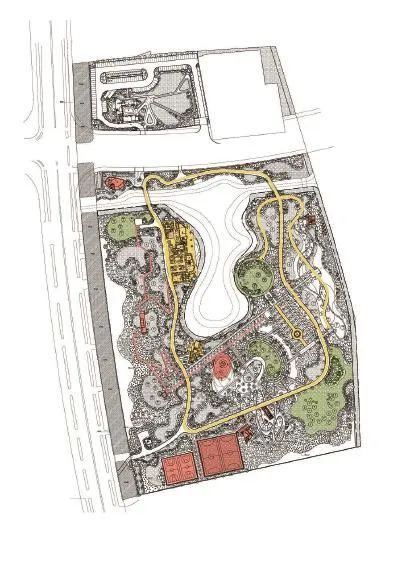 这一考量转化为记者看到的区域划分图——整座公园被划分为绿色、黄色、红色三个区域。绿色区域是与外界隔离的独立宠物活动区,允许主人放开狗绳,让狗撒欢,不影响在区域外活动的市民游客。黄色区域是“限行区”,居民必须牵好狗绳遛狗,这类功能区大多为上述三类人群共用的通行空间。红色区域是“禁入区”,比如儿童乐园、球场、高空栈道、卫生间等,园方专门在“禁入区”外设置了拴狗柱,带犬的居民必须将狗拴在外面,才能进入这些区域。