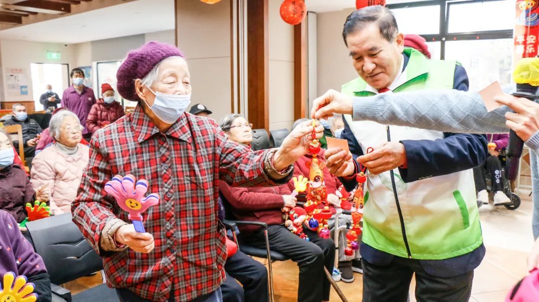 华东师大老年大学志愿服务工作站为在场的老人们准备了一份特别的新年惊喜,赠送老人可爱的蛇年挂件。随着全体演员再次登台,共同演唱《新年好》,整场活动在一片欢声笑语中画上了圆满的句号。