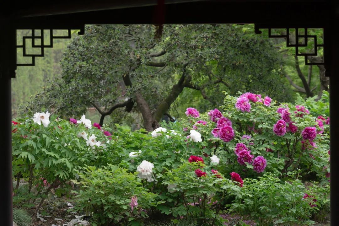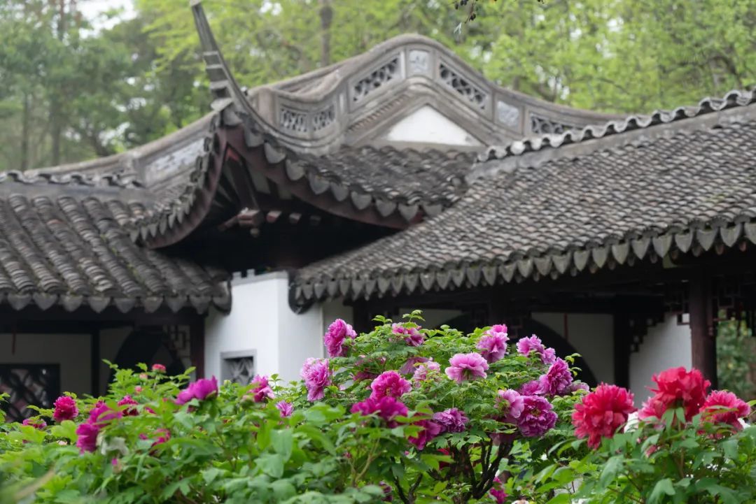 古猗园,这座明代的古典园林,在2024年因牡丹入选了上海市公园十大特色植物区,园中栽植了上百个牡丹品种,汇聚了白、红、粉、黄、紫、绿、蓝、黑、复色九大色系,几乎所有的花色都能在这百亩园林中见到。