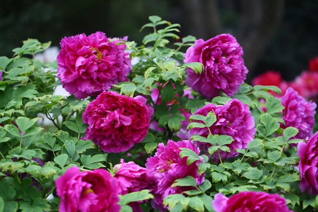 与古猗园内的‘红芙蓉’、‘彤云’、‘雪映桃花’等牡丹名品有着异曲同工之妙,令人赏心悦目。