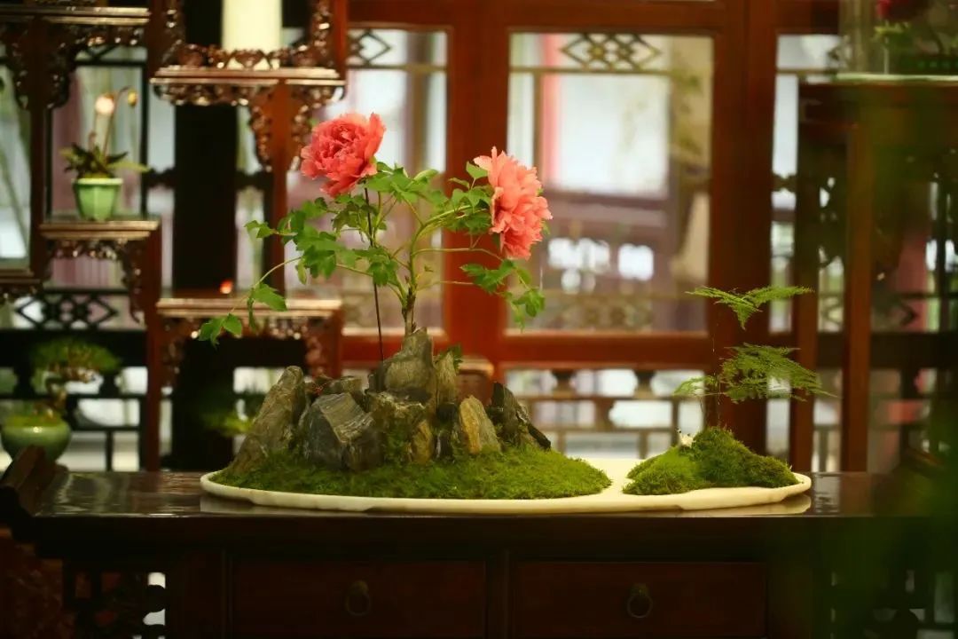 古猗园也常在春节期间将盆栽牡丹巧妙布置于厅堂之间,营造出一种别样的节日氛围。