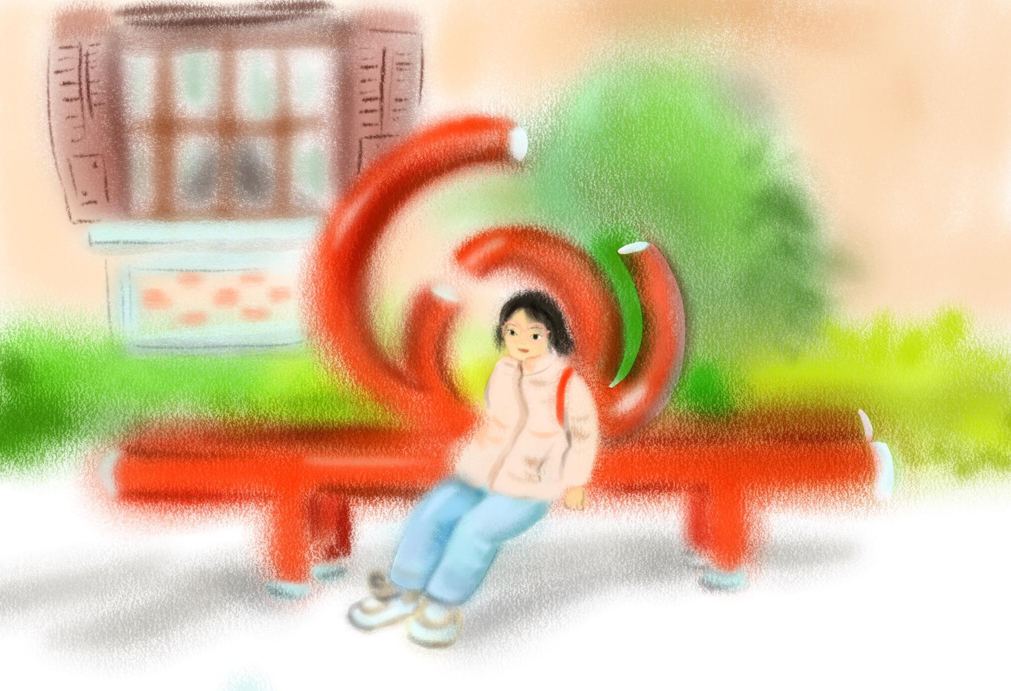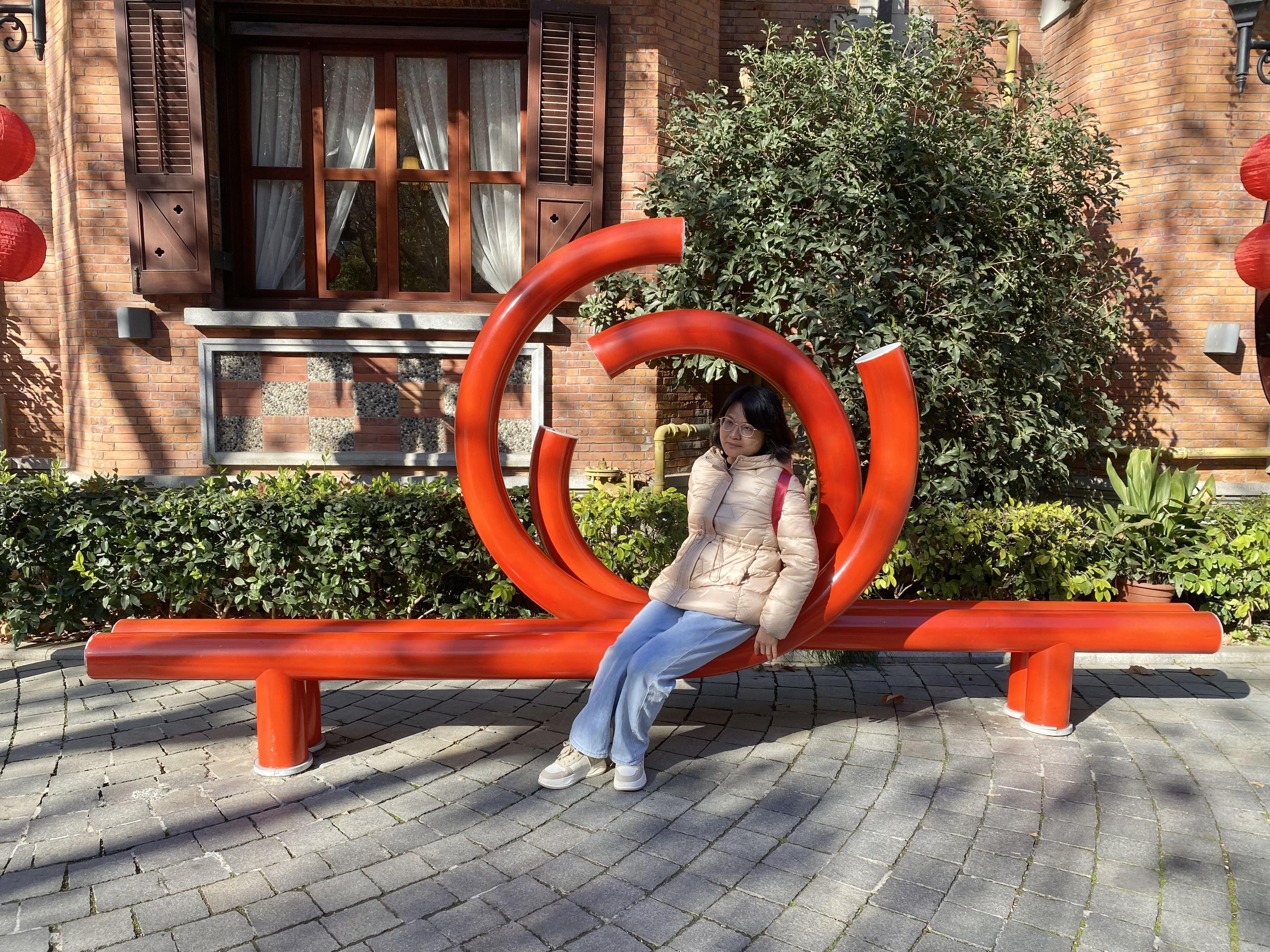 朱红色的流线装饰雕塑吸引着来来往往的路人,喜庆的颜色和临近的节日十分相配。