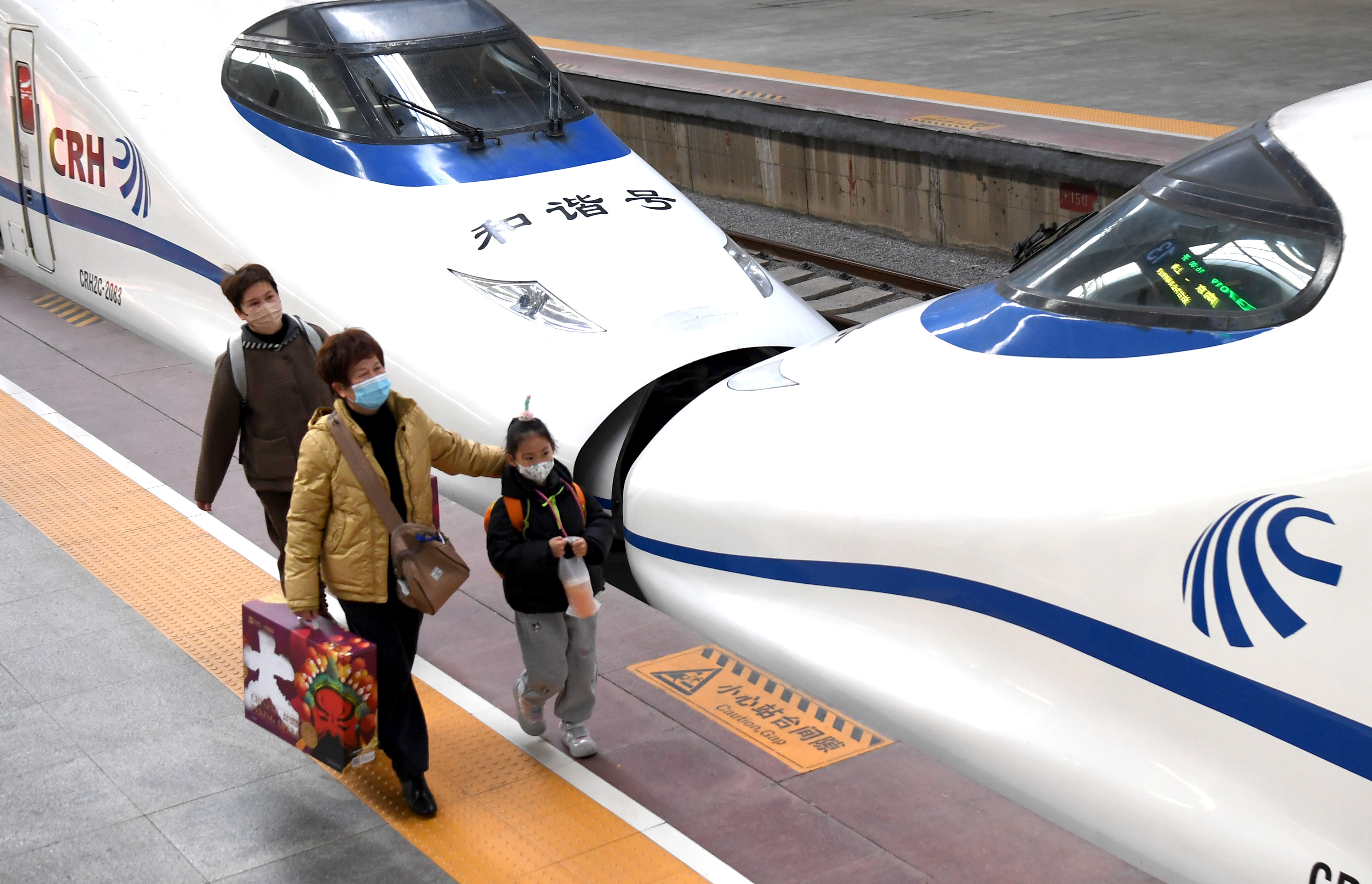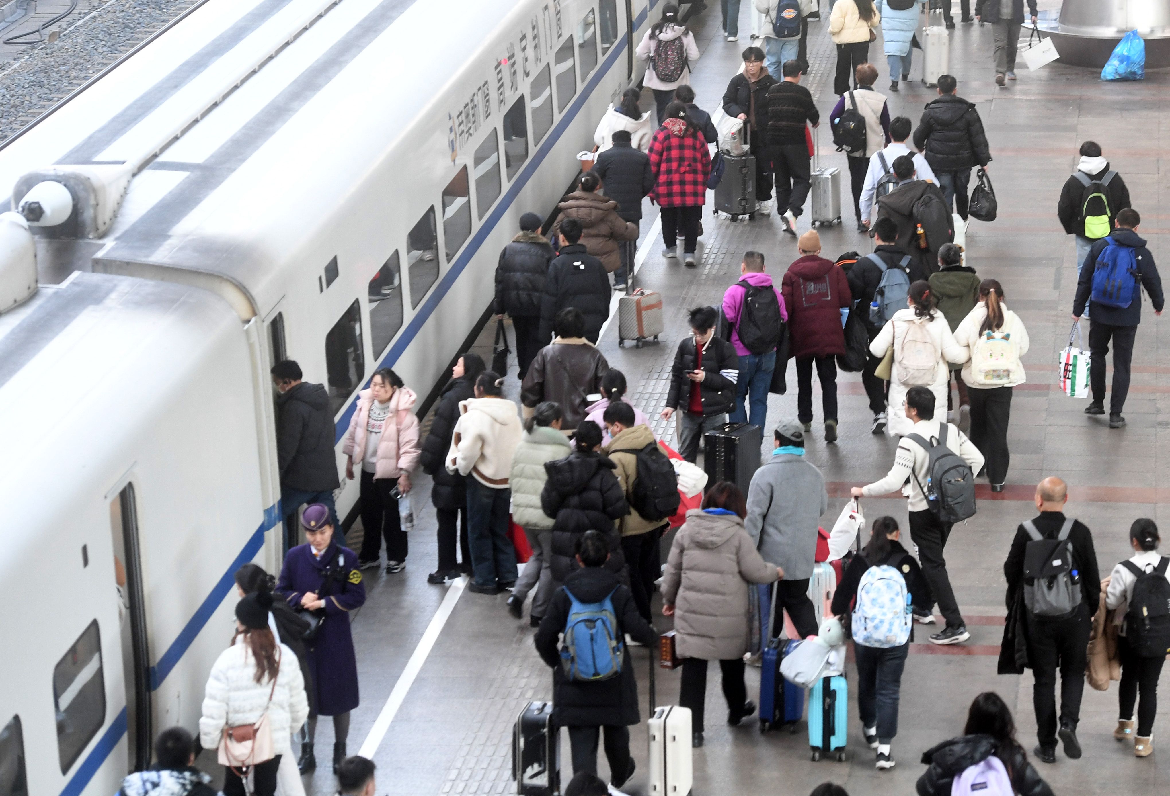 1月13日,在南京火车站,大批旅客正有序乘车返乡。 新华日报·交汇点记者 郎从柳摄