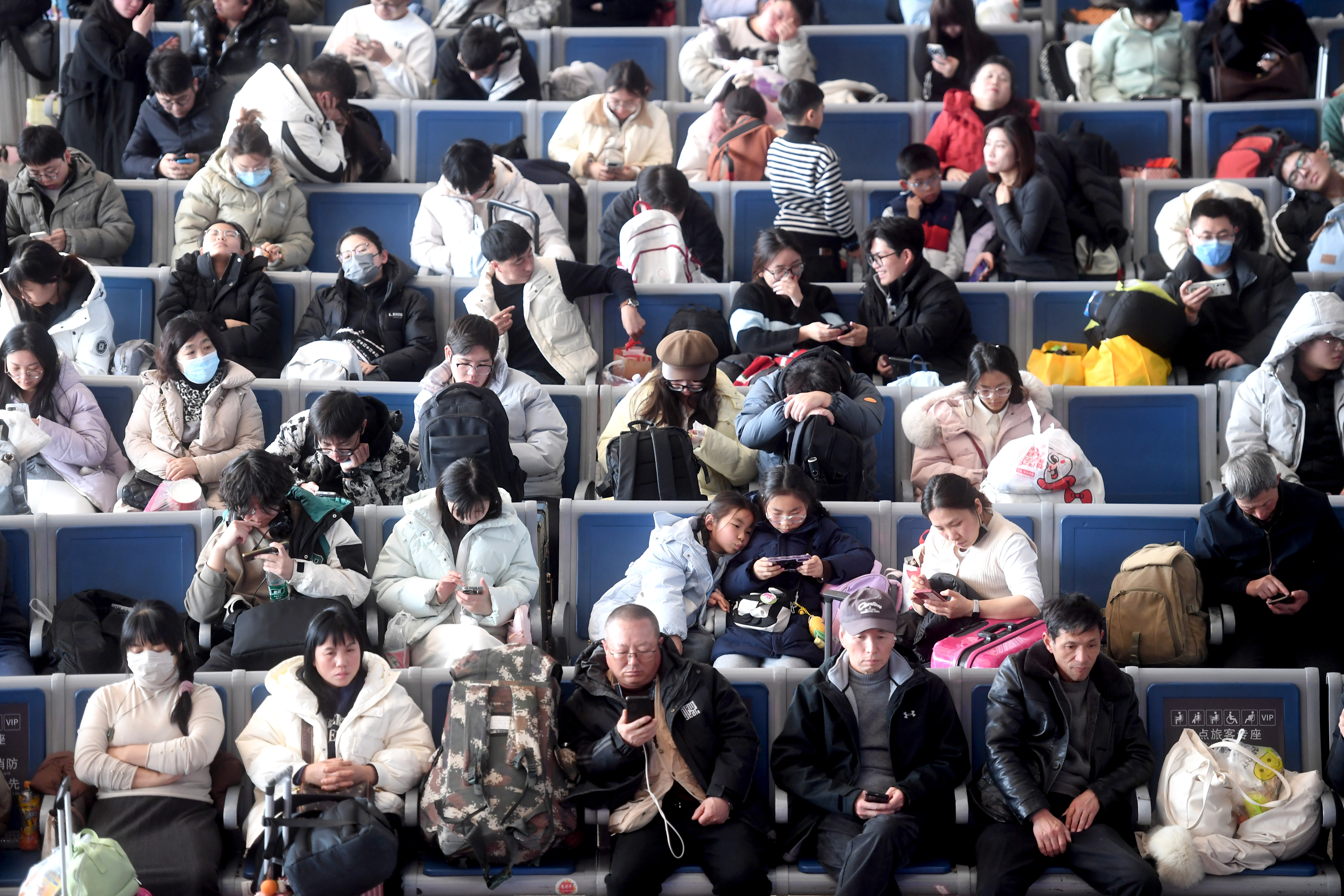1月13日,大批旅客在南京火车站候车大厅候车。 新华日报·交汇点记者 郎从柳摄
