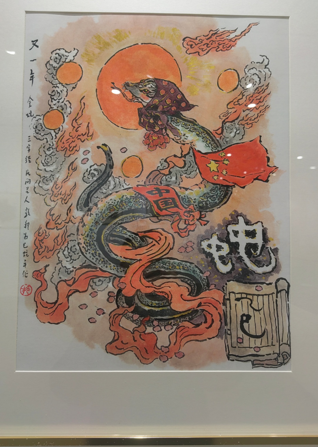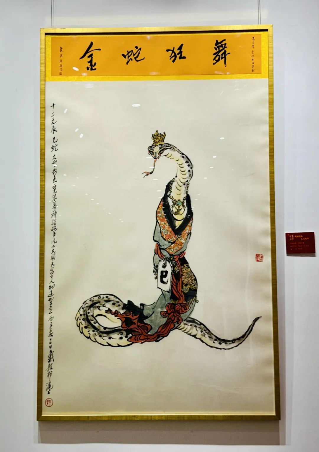 乙巳蛇年即将到来之际,在徐汇区田林街道社区党群服务中心一楼展厅内,“民间艺人”戴敦邦精心创作了一组笔墨精到、设色浓烈、独具个性且贴合时代的《金蛇三字经》。