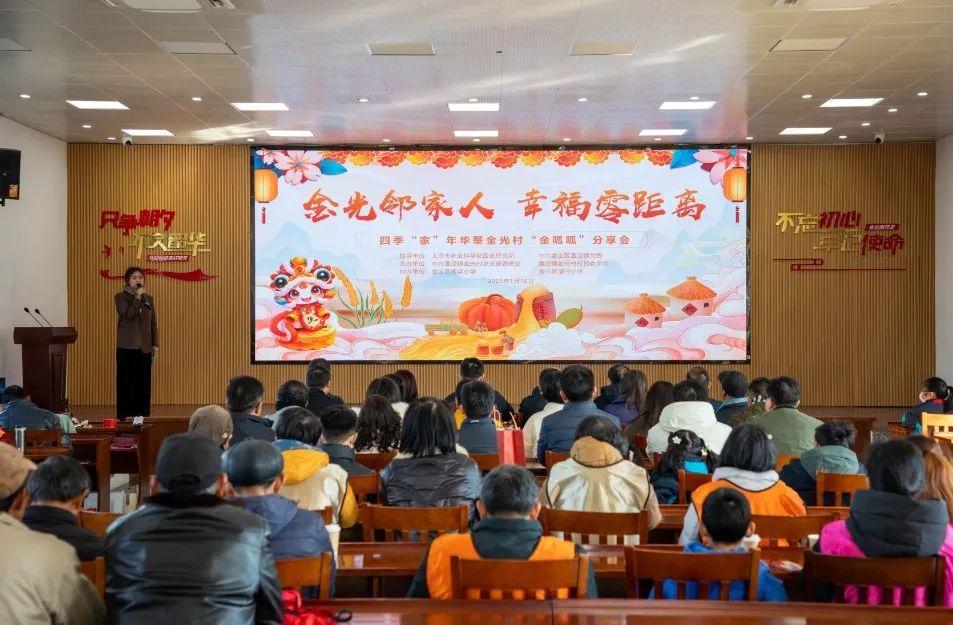 1月10日上午,以“金光邻家人,幸福零距离”为主题的四季“家”年华暨金光村“金呱呱”分享会在漕泾镇金光村举行。乡村振兴合伙人、邻家志愿者、海棠小学和漕泾小学学生共同参与分享会,共享乡村发展成果。