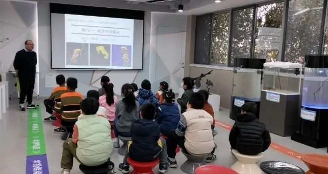 近日,前来妇儿之家的孩子们络绎不绝。展览设在一楼“杨浦滨江妇儿之家童伴Land”房间内,共展出水生生物标本30余种,包含国家一级保护动物“中华鲟”、国家二级保护动物长须鲸和大海马,并特别展出南极科考期间获得的珍稀南极企鹅标本;活体区包含大型观赏水母大西洋海刺、海月水母、大海马、红湖青蟹等,让亲子家庭亲身感受到神秘水世界的魅力。在专业老师的讲解下,孩子们仿佛踏上了南极科考之旅中,穿越到了那片被冰雪覆盖的神秘大陆;大家还跟随着老师的生动解说潜入海洋,聚焦大黄鱼,观察其独特的洄游习性……“海马在海洋生物中独树一帜,雄性海马的育儿袋更是大自然赋予的神奇‘育儿室’。”1月13日开展的海马科普展备受欢迎。东海水产研究所的研究员把海马、水母等水族生物带到现场,开启“海洋生物快闪”。这种身形小巧却充满神秘色彩的海洋生物,让孩子们求知欲爆棚。现场不仅有海马标本,还有海马活体。它们独特的直立游泳姿态,让孩子们惊叹连连,纷纷围着玻璃缸细心观察。“孩子放寒假想去水族馆,想不到家门口就有免费的展览。”家长王女士表示,海洋科普活动让孩子了解很多知识,开拓了视野。此次活动由上海市杨浦区妇女儿童工作委员会办公室联手中国水产科学研究院东海水产研究所、上海杨浦滨江城市运营管理有限公司共同举办。