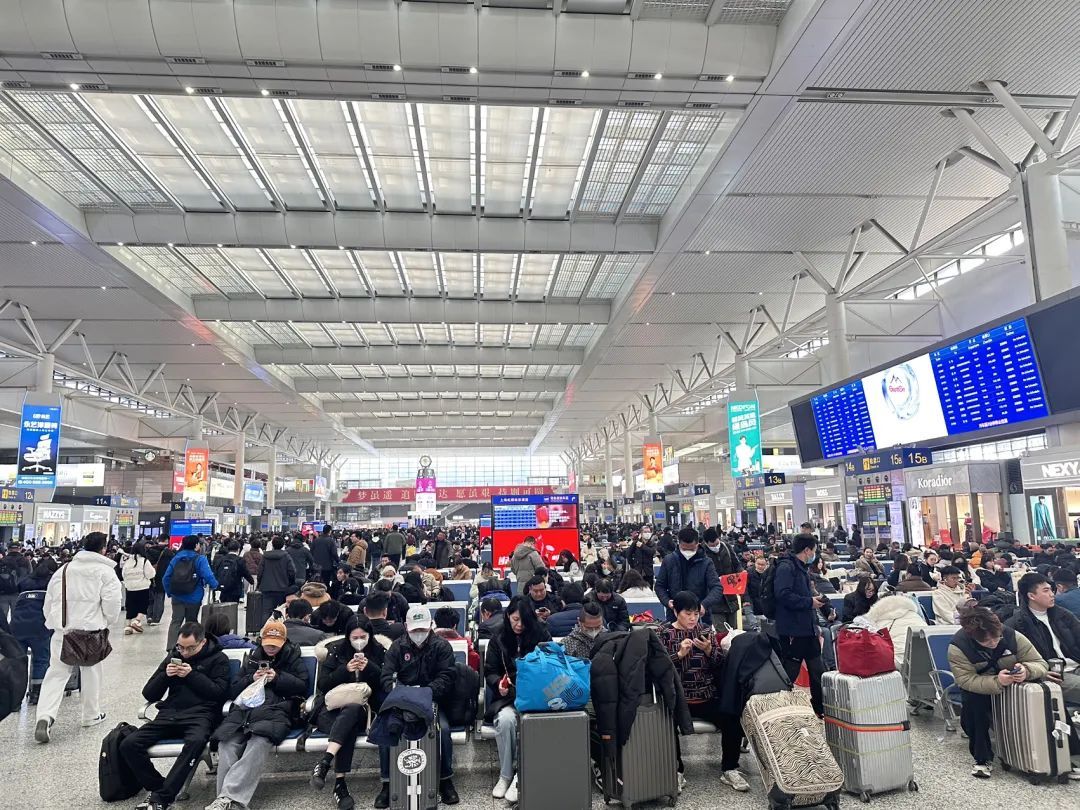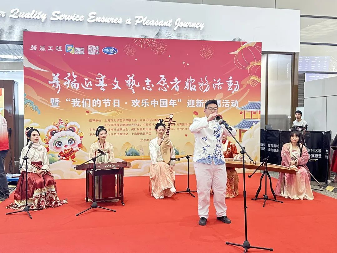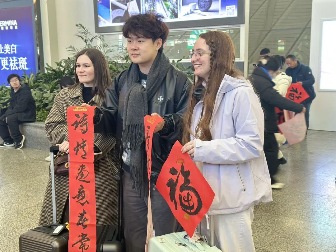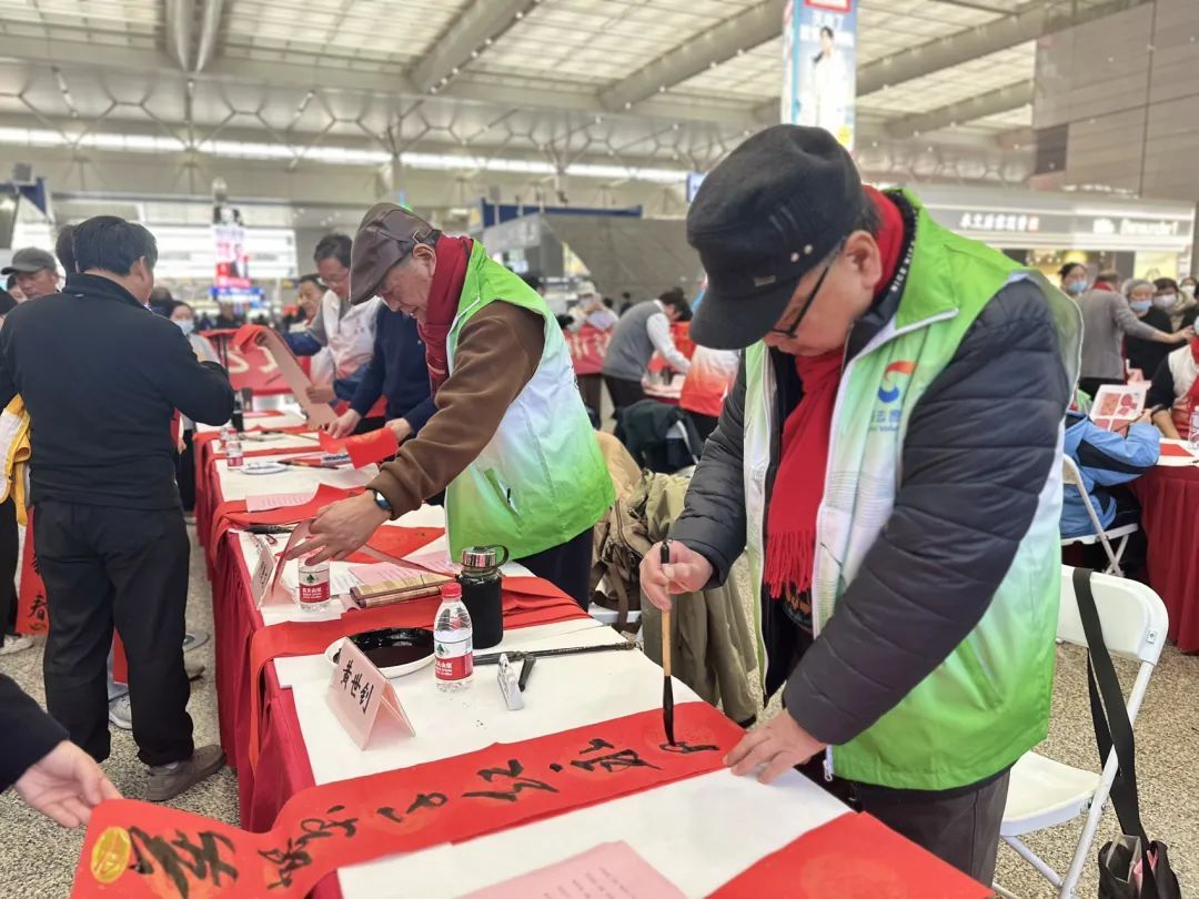随着一阵欢快的旋律响起,上海爱乐民乐团闪亮登场,周围旅客迅速聚拢过来,演奏间隙不时响起阵阵掌声。从虹桥火车站乘车返回安徽过年的旅客李先生说,听着熟悉的旋律,感觉年味就来了,“上海特别好,很难忘的回家之旅”。悦耳的民乐旁,来自上海市书法家协会和闵行区文联的多位书法家和书法爱好者挥毫泼墨,为旅客们赠送春联。一位旅客精挑细选了一副春联,兴奋地说:“我去过很多地方,第一次在火车站遇上送春联,充满心意的新年礼物,以前都是买的,这次是书法家写的,感觉特别温暖。”一位小朋友也跃跃欲试,在书法家的指导下,一笔一画地写下了自己的新春祝福。法国留学生金陆毅和朋友准备从虹桥站去杭州玩。“我不知道具体该怎么表达,但是现场很热闹,大家都很开心。”他收获了这份蛇年吉祥物,十分感动:“这样的活动让我感受到了中国传统文化的魅力,祝大家新年快乐!”此次“‘万福迎春’文艺志愿服务活动暨‘我们的节日・欢乐中国年’迎新送福活动”,由新虹街道联合上海市书法家协会、铁路上海虹桥站、闵行区文联等多家单位共同主办。这已经是该街道连续第四年举办此项活动,在活动形式上比之前更有创新,参与单位、人数也逐年增加。“在春运的首日,我们给南来北往的旅客送去了新春的祝福。祝愿新年快乐。”上海书法家协会秘书长章宏伟表示,上海书法家协会是首次进入虹桥火车站送祝福,“把福字带回家,开开心心过大年”。春运,承载着无数家庭对团圆的殷切期盼和对新生活的美好憧憬。新虹街道党工委副书记周行君说:“我们希望通过这一系列丰富多彩的文化活动,让匆匆赶路的旅客在旅途中也能感受到家的温馨与节日的欢乐氛围。我们也期望能将这项活动持续办下去,积极展现上海的温度以及传承和弘扬中华优秀传统文化。”据悉,铁路上海站下辖上海站、上海南站、上海虹桥站、上海松江站、上海西站、南翔北站、安亭北站、安亭西站、金山北站、练塘站,春运首日铁路上海站预计发送旅客36万人次,春运40天预计发送旅客超1600万人次,日均发送旅客超40万人次,同比增长超13%,创历史新高。当日,该站增开至南通、武汉、南昌、成都、贵阳等方向列车。从目前车票的预售情况来看,云贵、广西、东北、中原方向客流启动迅速,节前京津、广东、福建等方向车票均较为充足。为提升旅客出行体验,铁路上海站四大站区“心尚”服务工作室焕新亮相,精心规划重点旅客候车区、儿童游乐区、母婴室等专属功能区。卫生间增设消毒剂盒,提供卫生纸,加强深度保洁。安检设置急客进站通道,为老幼病残孕等重点旅客和距离开车时间不足15分钟的急客提供优先验证、优先安检服务。上海虹桥站引入“心小鹿”AI“数字人”服务,提供24小时智能问询、站内指引等内容。铁路部门提醒广大旅客,春运客流较大,请旅客朋友们合理安排好自己的出行时间,为市内交通、进站安检等环节预留充足时间。铁路上海站一共有四大站、六小站,各站点间相距较远,旅客朋友们在前往火车站乘车时,一定要确认好乘车的车站站名,以免走错车站。