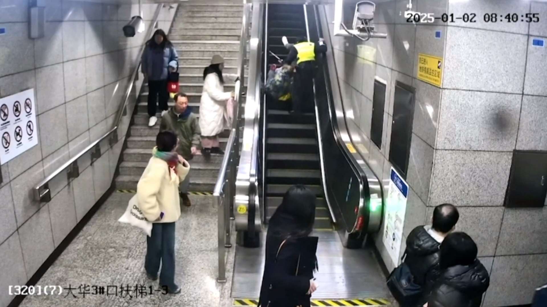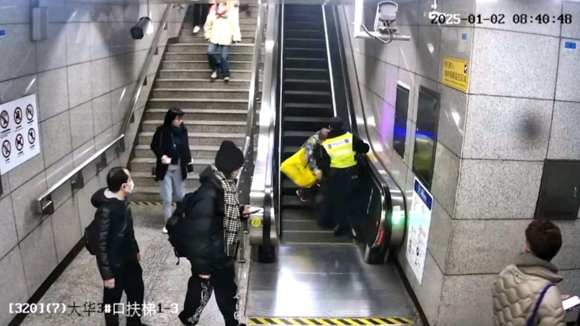 在此,民警提醒高龄老人或者腿脚不便的老人,在轨交车站可乘坐无障碍电梯,乘坐自动扶梯务必注意脚下安全,拉好扶手,以免发生危险的情况。