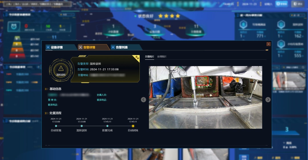 目前,高新区所有精品小区都增设了智能化管理平台,垃圾箱房投口区的内外监控系统直接联通街镇“一网统管”平台。通过AI分析和智能识别功能,平台能够实时监控到垃圾桶满溢、垃圾落地、污水横流等问题,自动生成处理案件,并推送给相关工作人员,确保问题能得到及时处理。同时,形成线上报警、任务派单、问题处理、整改反馈的闭环管理机制。
