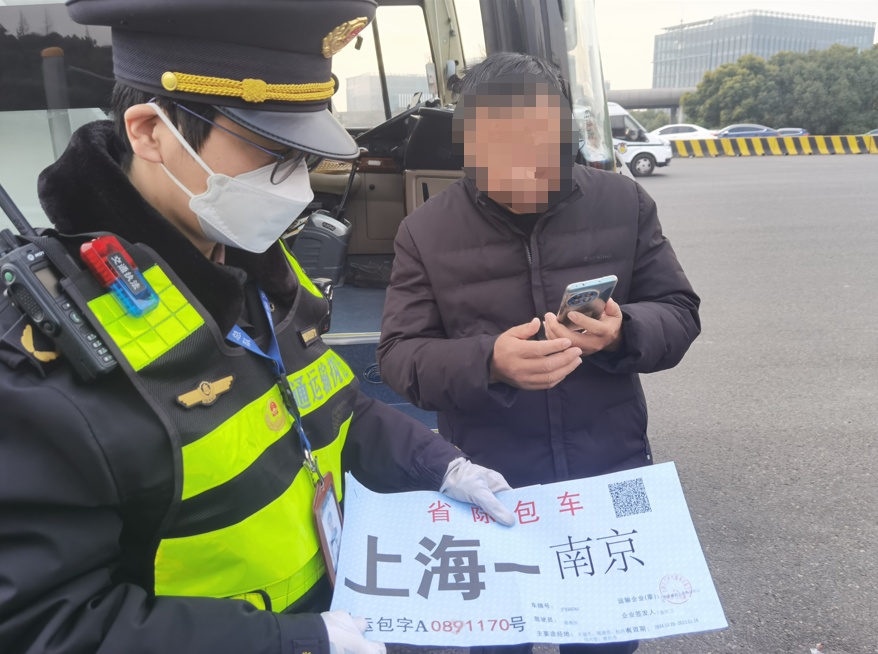 另一辆省际包车的证件问题也引起执法人员的注意。经询问,司机承认一直在使用同一张包车线路牌往返上海和南京。
