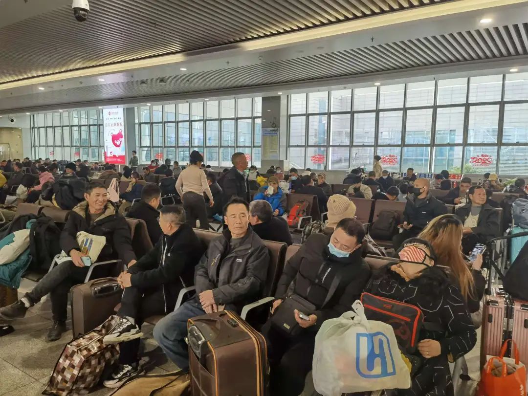 旅客樊先生:“我回四川达州要24个小时,今天10点多到明天10点多。就带了一点随身的东西,回家团聚一下,过年了嘛。”