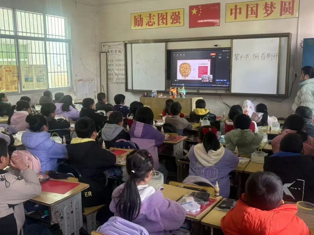 这节课围绕“辅首衔环”这一传统艺术手工展开。通过网络直播连线,孩子们认真聆听老师的讲解与演示,用简易的材料动手制作,不仅锻炼了动手能力,更体验了中华传统艺术的独特魅力。