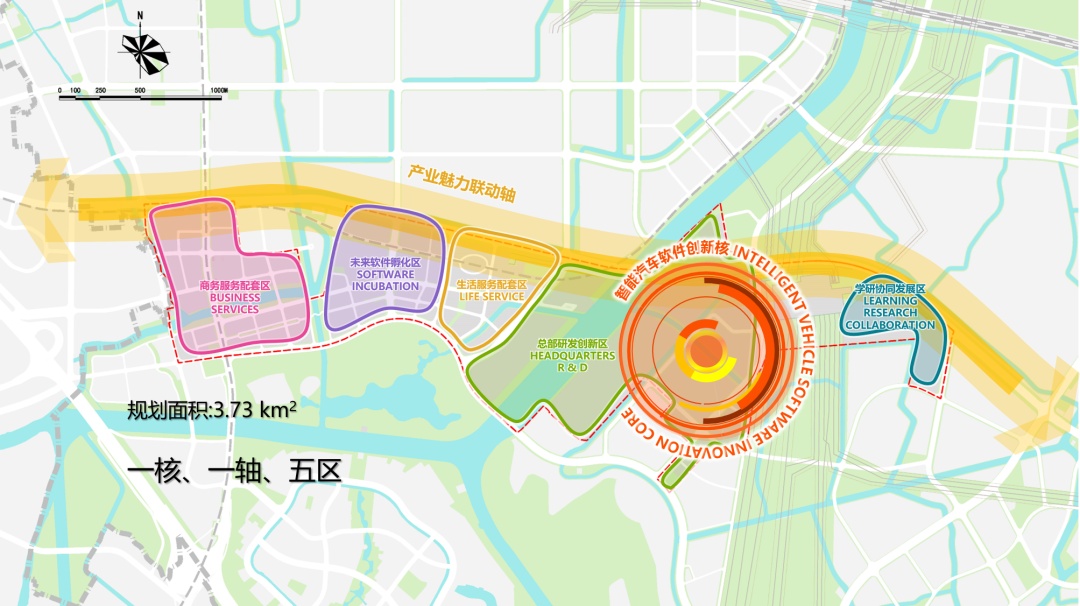 上海智能汽车软件园由市经信委批准成立,于2022年9月开园,是国内首个智能汽车软件特色园区。软件园规划面积3.73平方公里,地处上海国际汽车城核心区,是长三角一体化协同发展的先导区及上海建设世界级汽车产业中心的核心承载区,总体按照“一核、一轴、五区”规划布局,同时融合水脉、文脉、人脉,形成“三生四联五区”的空间格局。