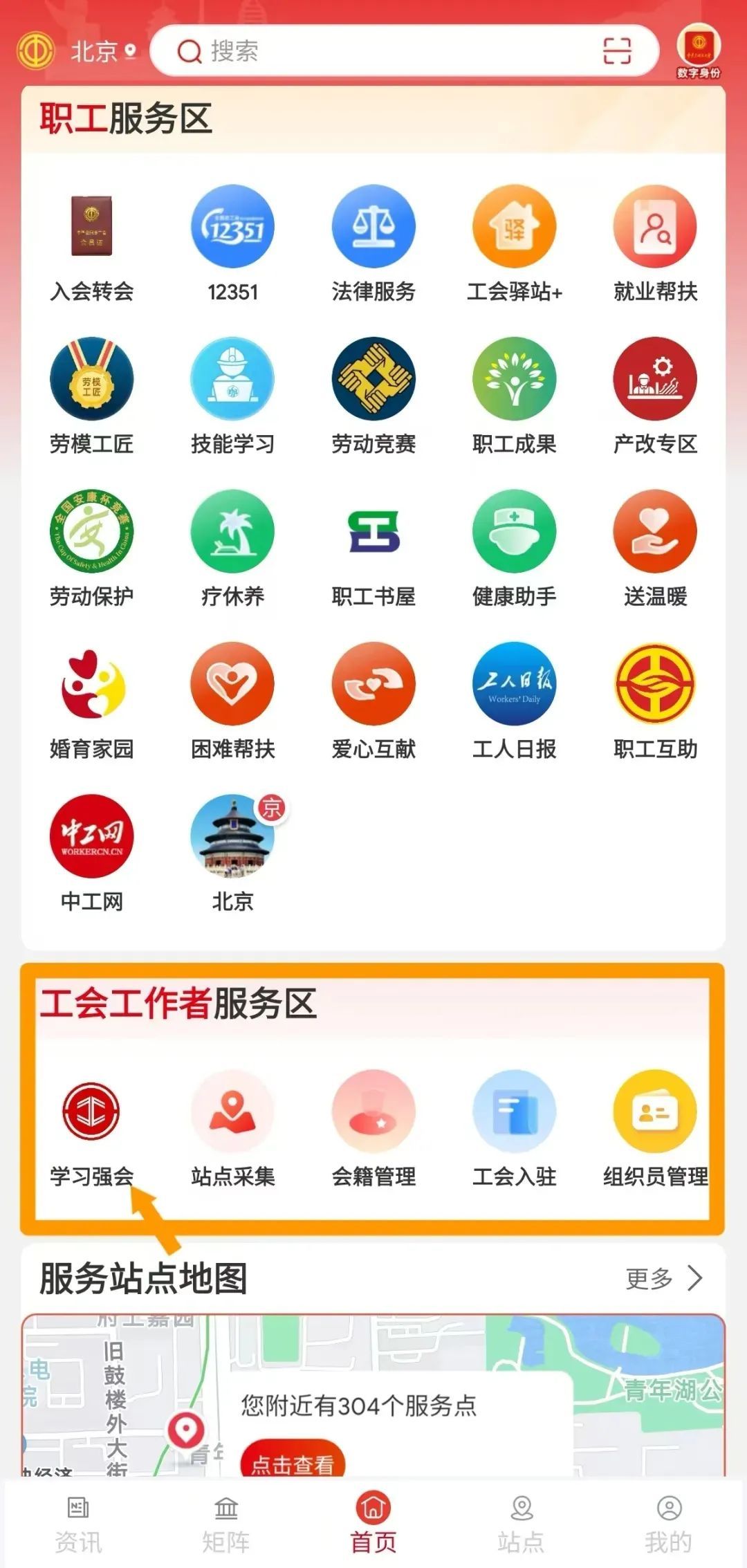 下载并进入“职工之家”APP首页,“工会工作者服务区”“学习强会”版块,在首页轮播图进入活动专区参与答题↓