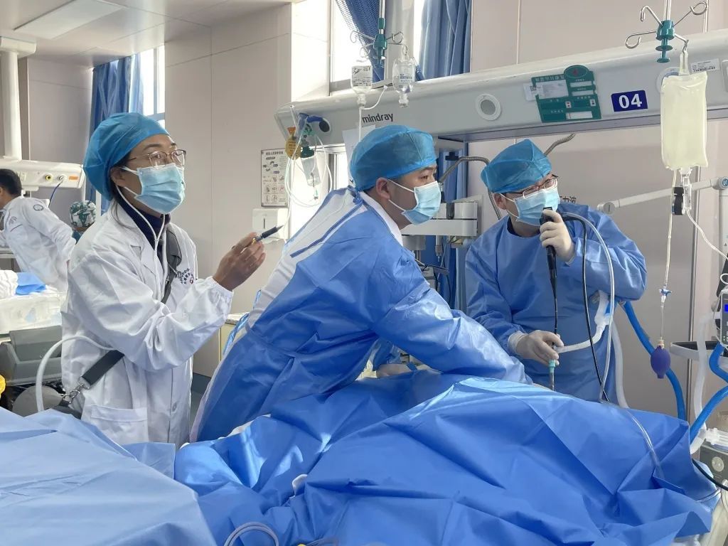 “一到这里,我们就马上投入救援工作,有的同事因高原反应强烈,还需要吸着氧做手术。”狄扬说,在抵达医院后,他与医疗队员们前往各自科室了解伤员情况,有3名重症患者被分诊到了他所在的普外科,其中有1名危重的多发伤患者。“这是一名40多岁的男子,在地震中被石头砸中,骨盆多处骨折还有移位,腹部出血,出血量一直很大。”在与当地医生进行病例讨论后,狄扬决定与介入科医生马晓云,连夜为患者进行一场微创介入手术。
