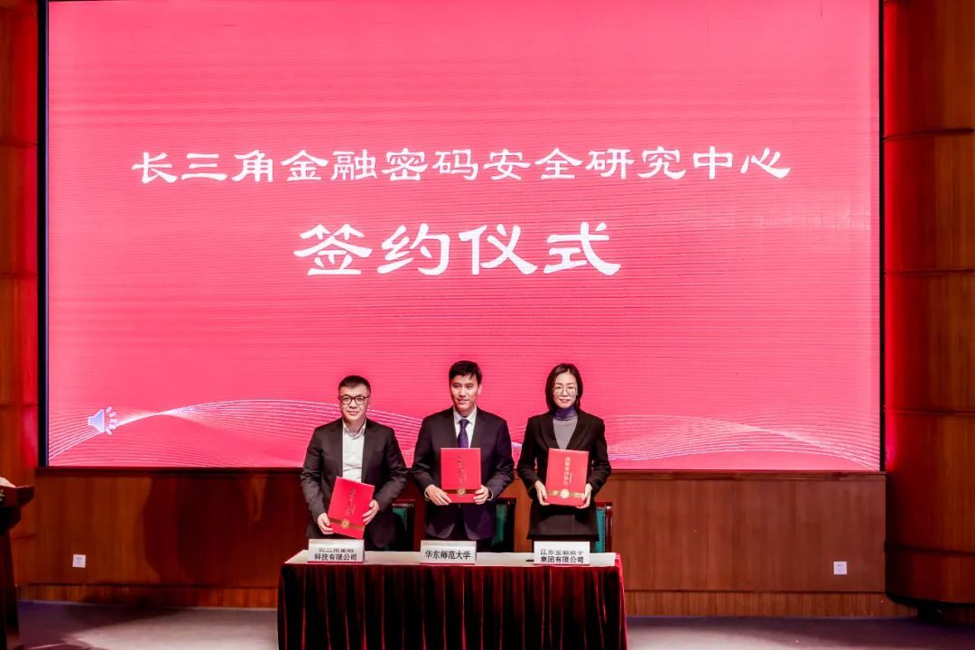 为长三角地区的金融密码安全提供强有力的科研支撑和人才保障,促进区域金融发展和维护金融安全,会上,长三角金融科技有限公司、江苏金服数字集团有限公司和华东师范大学签署了共建“长三角金融密码安全研究中心”的战略协议。