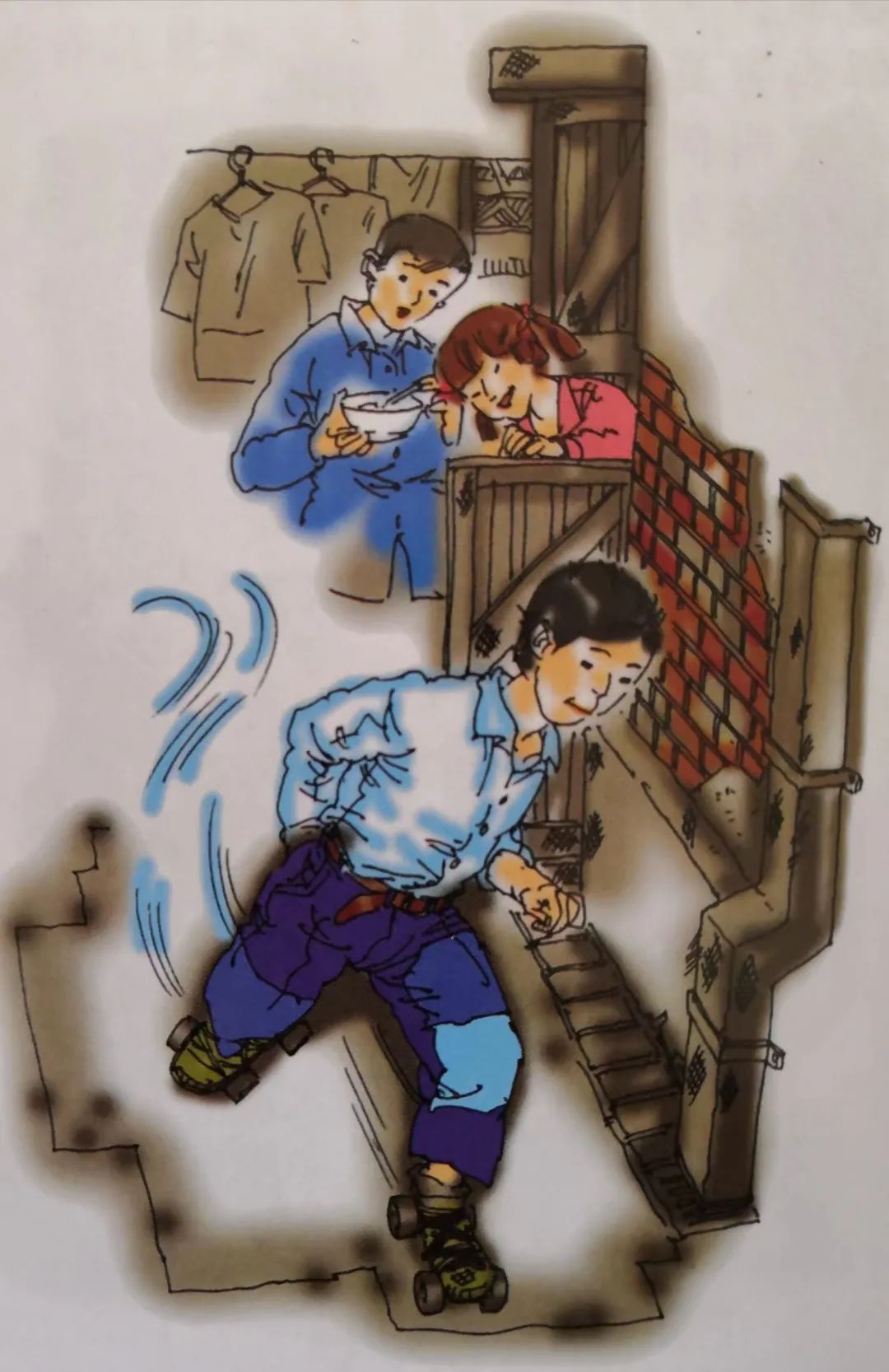 上海男小囡喜爱溜冰,猫腰蹬腿,风驰电掣如“神行太保”,扎足“台型”。有穿一只鞋滑,也有穿双足。原基本穿双排四轮轮滑(quad roller skating)溜冰鞋,现多是单排直列轮滑(inline roller skating)。我在南市区团干部夏令营试过双排四轮,站稳不易,开步艰难。
