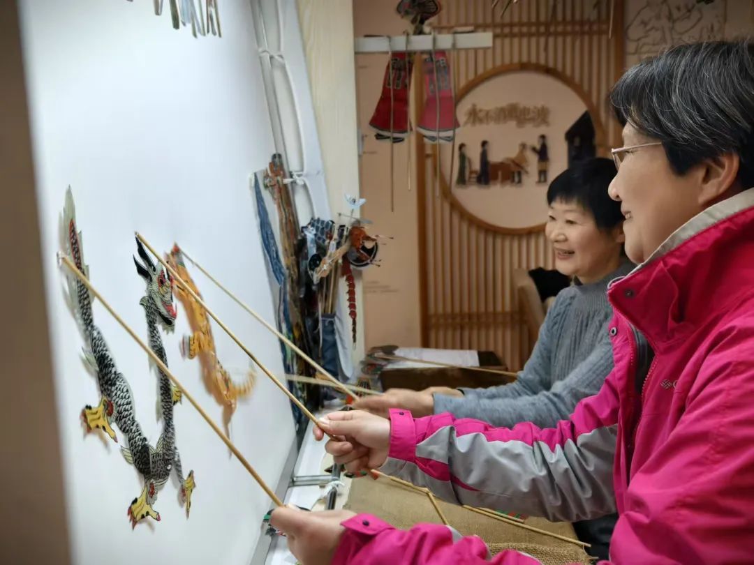 “你这里要往上走,手要扬上去,哎——对喽!”“手不要抖,龙才能画得活灵活现!”2024年3月,继康健外国语中学皮影小传人传习班、市民艺术夜校皮影班之后,康健桂林皮影又面向老年群体开出了新的课程。12期课程结束,学员们都意犹未尽,强烈要求“续课”。于是,如今的每周四下午,康健街道党群服务中心四楼康乐非遗工坊里,都会传来沈明泉中气十足的声音。沈明泉说,皮影不能停留在原来的传统制作方法上,要创新,将动漫和皮影相结合,以后要在这方面多动动脑筋,让广大群众喜欢。